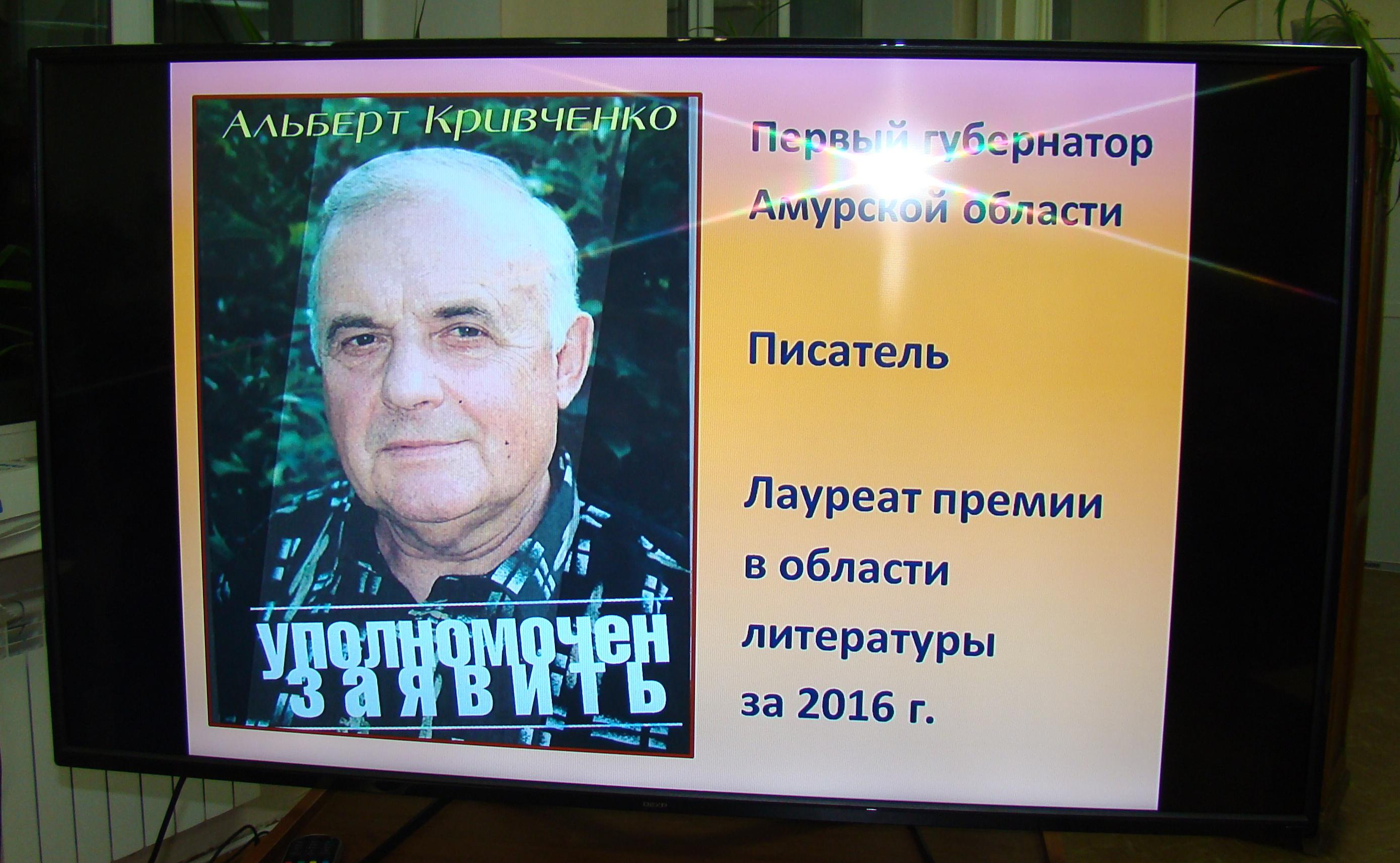 Альберт Аркадьевич Кривченко родился в 1935 году. Окончил факультет журналистики Уральского государственного университета. Работал корреспондентом областной газеты «Амурская...