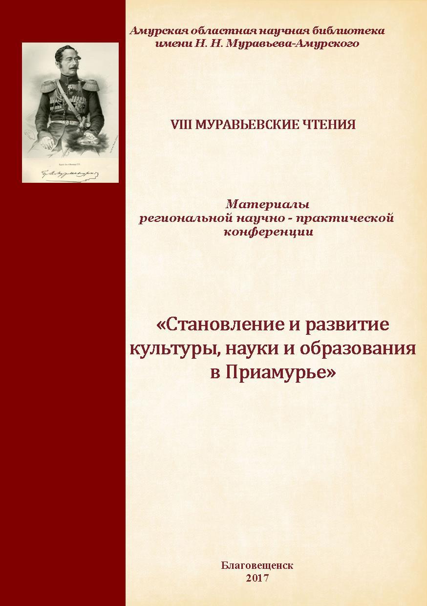 Амурской областной научной библиотекой изданы материалы региональной научно-практической конференции VIII Муравьёвские чтения «Становление и развитие культуры, науки и образования в Приамурье». Составитель издания И.В. Дымова, главный библиотекарь отдела краеведения и редких книг.
