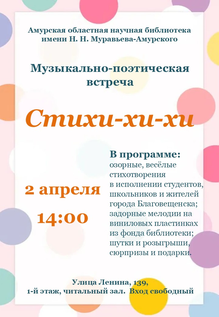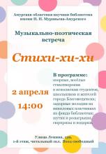 Друзья, 2 апреля в 14:00 в Амурской областной научной библиотеке состоятся весёлые весенние поэтические посиделки «Стихи-хи-хи».