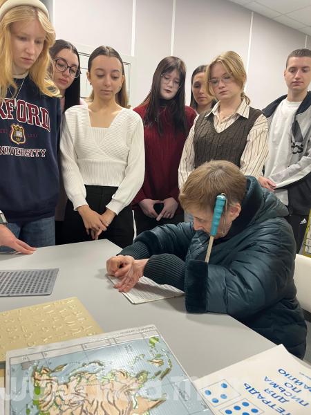 Большой интерес у будущих юристов вызвало продемонстрированное в работе современное тифлооборудование отдела: читающая машина, стационарное электронное увеличивающее устройство, оборудование для печати рельефно-точечным шрифтом Луи Брайля, адаптивное программное обеспечение и разнообразные устройства для чтения «говорящих» книг.