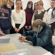 Вера Сергеевна Щёкина, постоянный читатель Центра, продемонстрировала чтение текста, напечатанного рельефно-точечным шрифтом Брайля, показала, как пишут незрячие с помощью грифеля и прибора для письма.