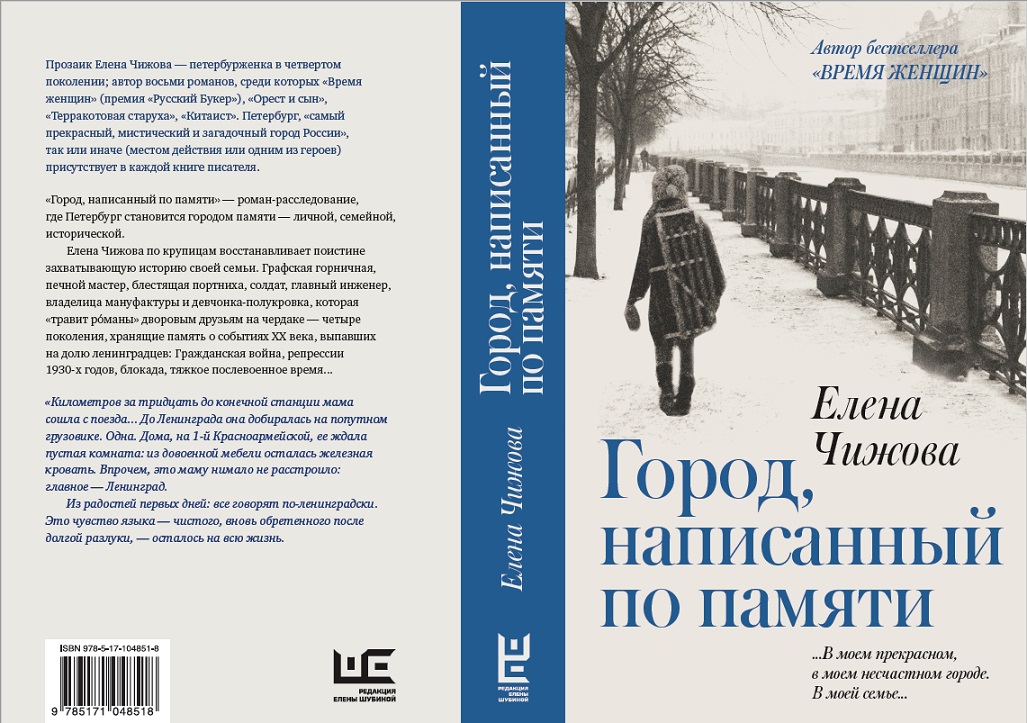 «Город, написанный по памяти» Елены Чижовой – роман-расследование, где Петербург становится городом памяти – личной, семейной, исторической. Автор по крупицам восстанавливает захватывающую историю своей семьи. Графская горничная, печной мастер, блестящая портниха, солдат, главный инженер, владелица мануфактуры и девчонка-полукровка, которая «травит рoманы» дворовым друзьям на чердаке, – четыре поколения, хранящие память о событиях ХХ века, выпавших на долю ленинградцев: Гражданская война, репрессии 1930-х годов, блокада, эвакуация, тяжкое послевоенное время.