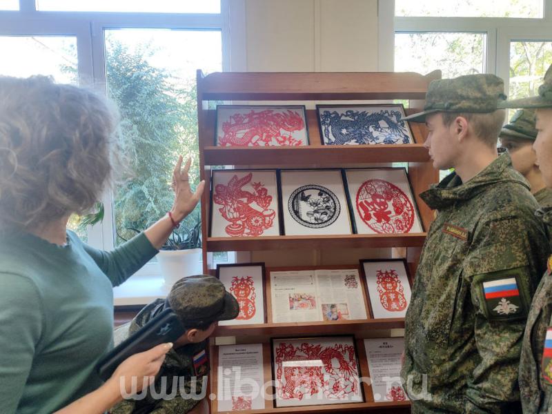 Молодые люди узнали историю библиотеки, познакомились с её книжными фондами и электронными ресурсами; осмотрели интересные книжные и иллюстративные экспозиции, в числе которых образцы бумажной вырезки цзяньчжи, выполненные китайскими чудо-мастерами провинции Хэйлунцзян, и выставка конкурса рисунков «Мифы Китая». Также экскурсанты попробовали почитать по-древнерусски, потренировались находить книги в алфавитном каталоге. Особенный интерес у них вызвали издания на военную тематику которые были им выданы для ознакомления в отделе обслуживания. Без сомнения, знакомство с библиотекой, возможность запечатлеться на фоне уникальных экспозиций и книг навсегда останутся в памяти наших гостей.