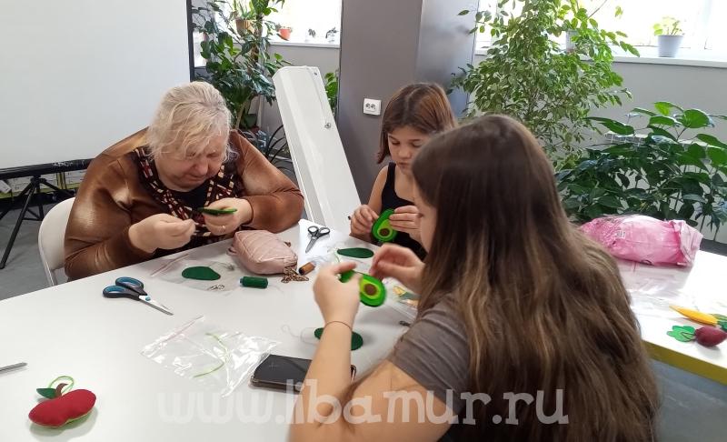 Под руководством опытных наставников, а для ребят наставниками являлись мамы и бабушки, участники мастер-класса выбрали подходящие заготовки из мягкого фетра. Самым маленьким понравилось яркое сочное яблочко, ребята постарше решили взять экзотический авокадо, и все принялись за кропотливую работу.
