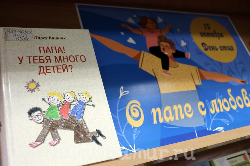 Тему отцовства поддерживает художественная литература: «Отцы и дети» И. Тургенева, «Дети мои» Г. Яхиной, «Папа» Т. Соломатиной, «Шоколадный папа» А. Йоргенсдоттер, «Папа» П. Манылова, «Мой папа курит только «Беломор» Ж. Кусаиновой, «Ради сына» Эрве Базена и другие издания.