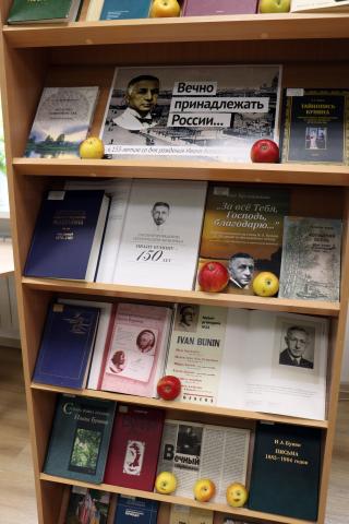 На книжной выставке «Вечно принадлежать России…» в отделе обслуживания представлены произведения автора и материалы о его жизни и творчестве.