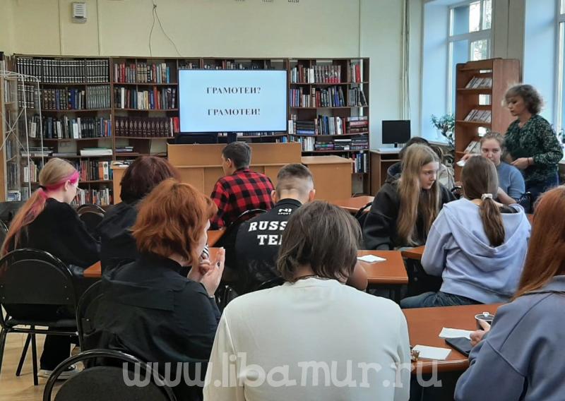 В Амурской областной научной библиотеке состоялась интеллектуальная игра «Грамотеи», участники которой состязались в знании русского языка и отечественной литературы.