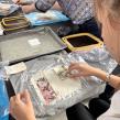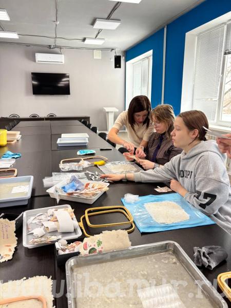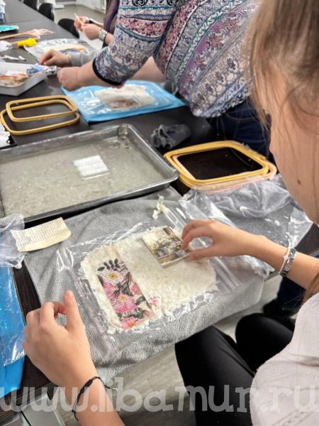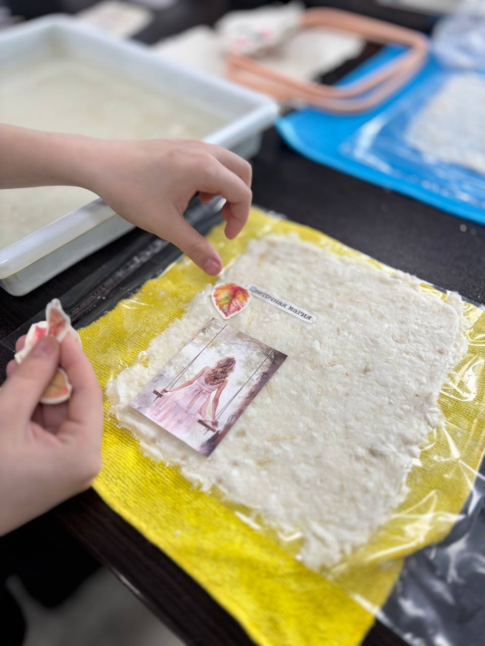 Ребятам предстояло самим изготовить бумагу, а затем сделать из нее открытку и украсить ее.