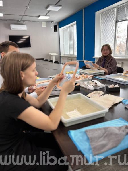 Перед началом занятия библиотекари напомнили ребятам какой праздник выпадает на последнее воскресенье ноября. Рассказали об особенностях и технологии изготовления бумаги.