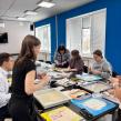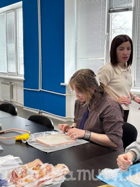 Сегодня в библиотеке прошел мастер-класс по изготовлению открытки ко Дню матери для учеников 10 класса школы-интерната № 8 для глухих детей.