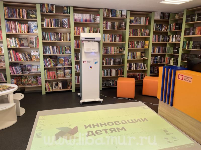 Для юных читателей оборудована «Библиопродлёнка» – детская зона с детской литературой, в том числе книгами с дополненной реальностью, раскрасками, фломастерами, настольными играми и интерактивным столом.
