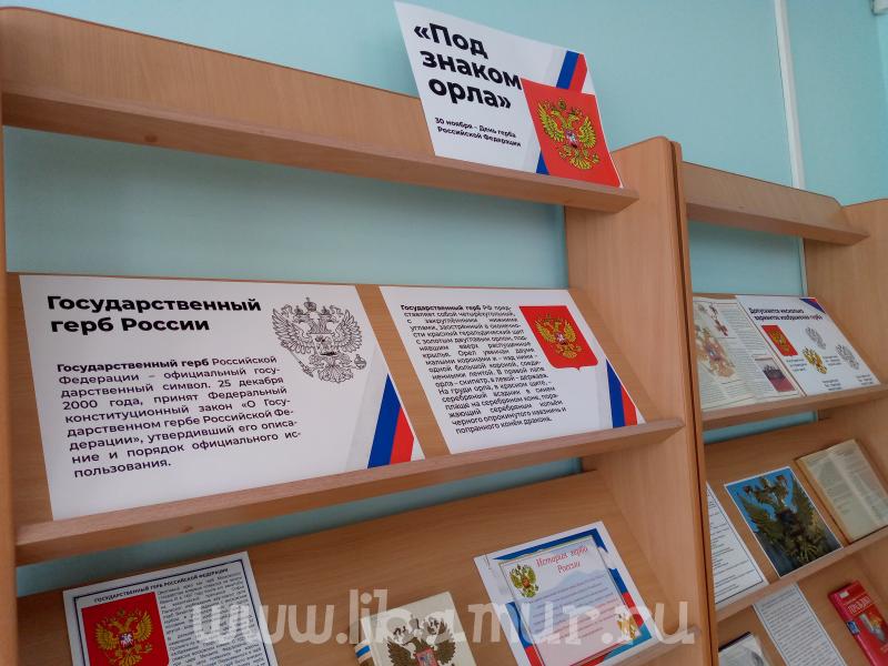 Ко Дню герба Российской Федерации (30 ноября) в Амурском региональном центре Президентской библиотеки им. Б.Н. Ельцина открылась книжно-иллюстративная выставка «Под знаком орла».