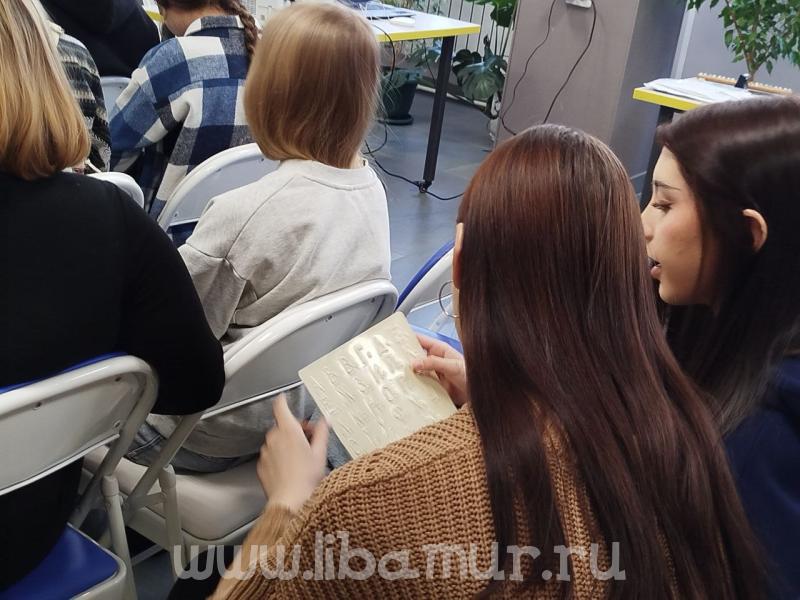 10 декабря сотрудники Центра библиотечного обслуживания незрячих и слабовидящих провели ознакомительную экскурсию для студентов группы 561 первого курса факультета социальных наук Амурского государственного университета.