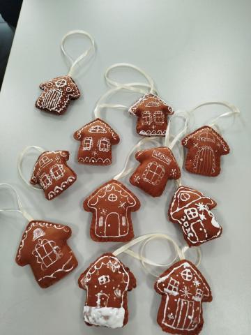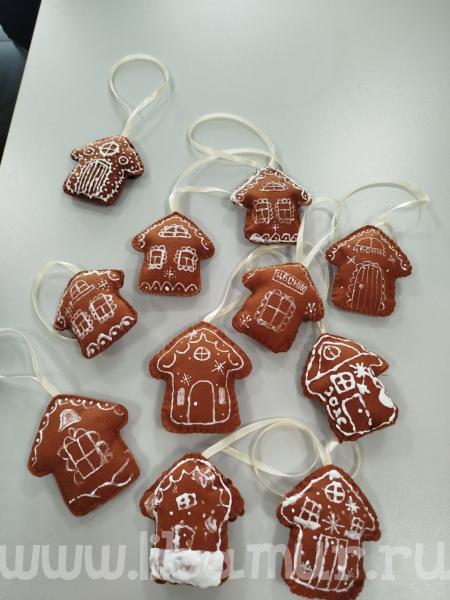 Каждый смог изготовить неповторимую игрушку и унести с собой готовое украшение для новогодней елки. Новогодние игрушки получились невероятно красивыми, и их не отличить от настоящего пряника.