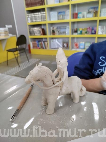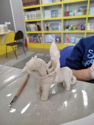 Заключительным этапом стала детализация изделия: ушки, упряжь, копытца, а самый творческий ребенок слепил целую композицию – лошадь и всадник. Глиняная лошадка готова! Осталось дождаться полного высыхания глины и встретиться вновь на следующем мастер-классе по росписи.