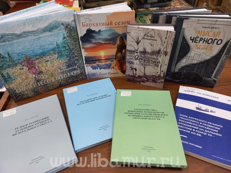 Творчество амурских авторов также представлено сборником стихов И. Игнатенко «Строчки», психологическим детективом Г. Одинцовой «Бархатный сезон», сборником С. Кулигиной «Сказки несоленого моря».