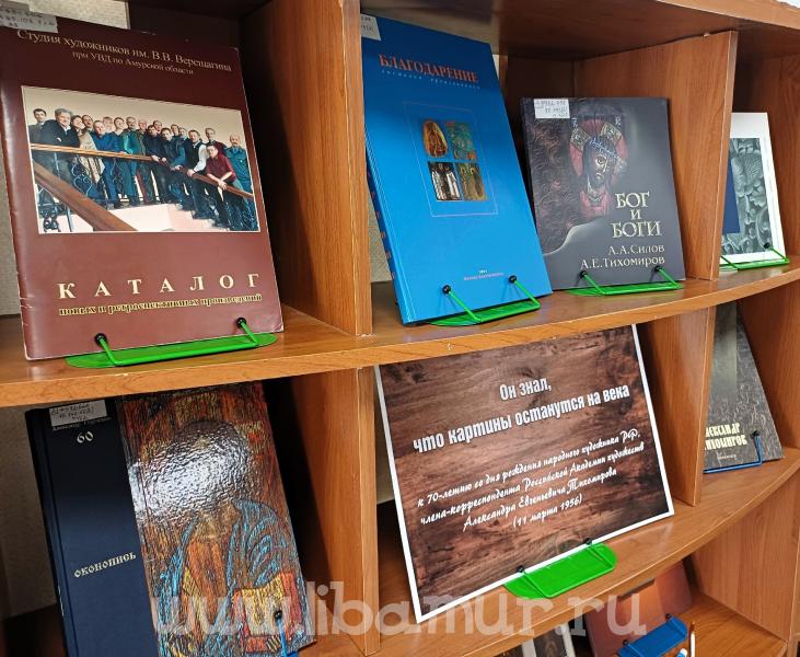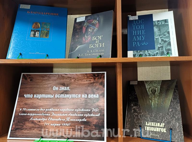 Александр Тихомиров – одно из известнейших имен Приамурья. Он художник-новатор, чье творчество стало одной из визитных карточек Амурской области. К 70-летию со дня рождения Александра Тихомирова в библиотеке подготовлена книжная выставка «Он знал, что картины останутся на века», подробно раскрывающая суть прославившего художника нового направления живописи – «оконописи», а также другие грани его творчества.