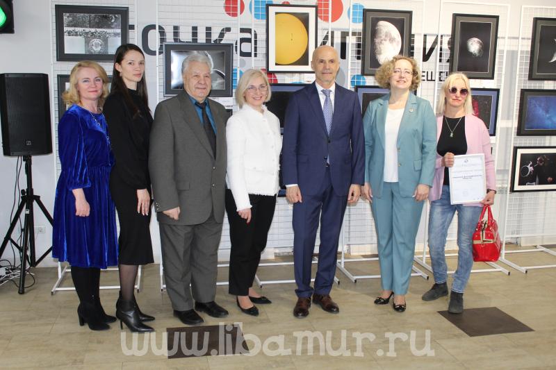 В Амурской областной научной библиотеке имени Муравьёва-Амурского продолжает работу фотовыставка «Космос на ладони», приуроченная к 65-летию первого полёта человека в космос. Экспозиция представляет фотографии, отражающие историю освоения космоса, современные достижения ракетно-космической отрасли и красоту Вселенной. Выставка направлена на поддержку интереса к естественным наукам и развитие познавательной активности у молодёжи.