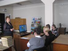 Заместитель директора Оксана Праскова познакомила студентов с книжными памятниками федерального, регионального и местного значения, акцентировав внимание на таких вопросах, как понятие книжного памятника, нормативно-правовая база в отношении книжных памятников и критерии их отбора.