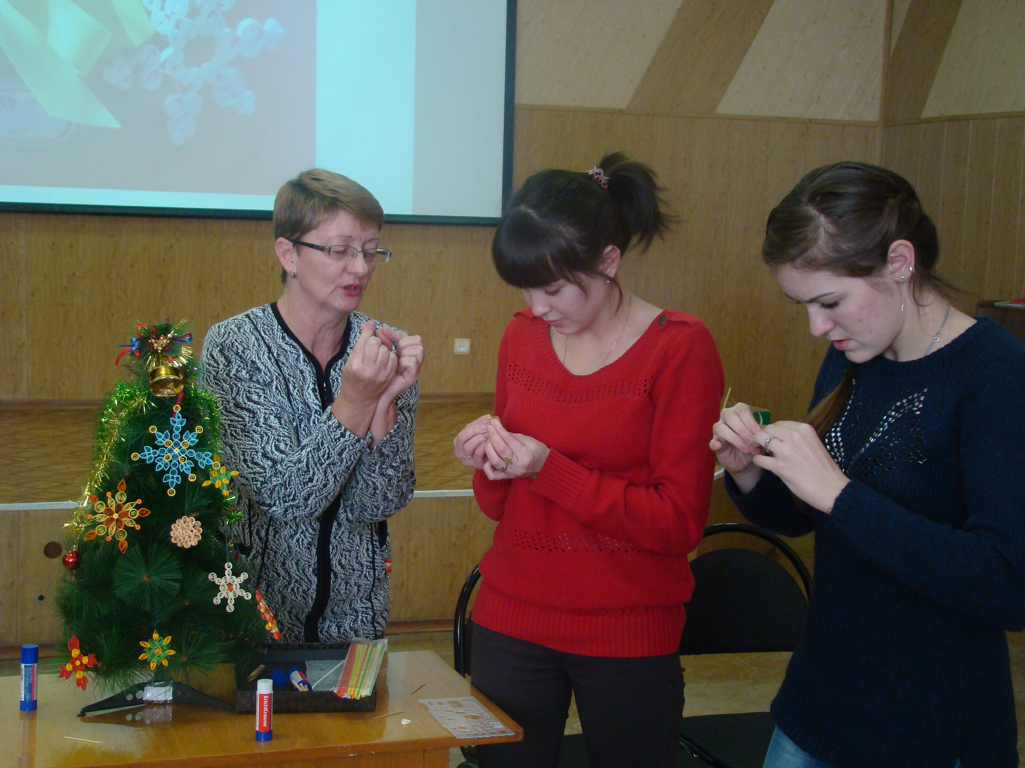 17 декабря в конференц-зале библиотеки прошли мастер-классы по новогоднему макияжу, праздничной сервировке новогоднего стола, изготовлению ёлочных украшений и сувениров в технике квиллинг.