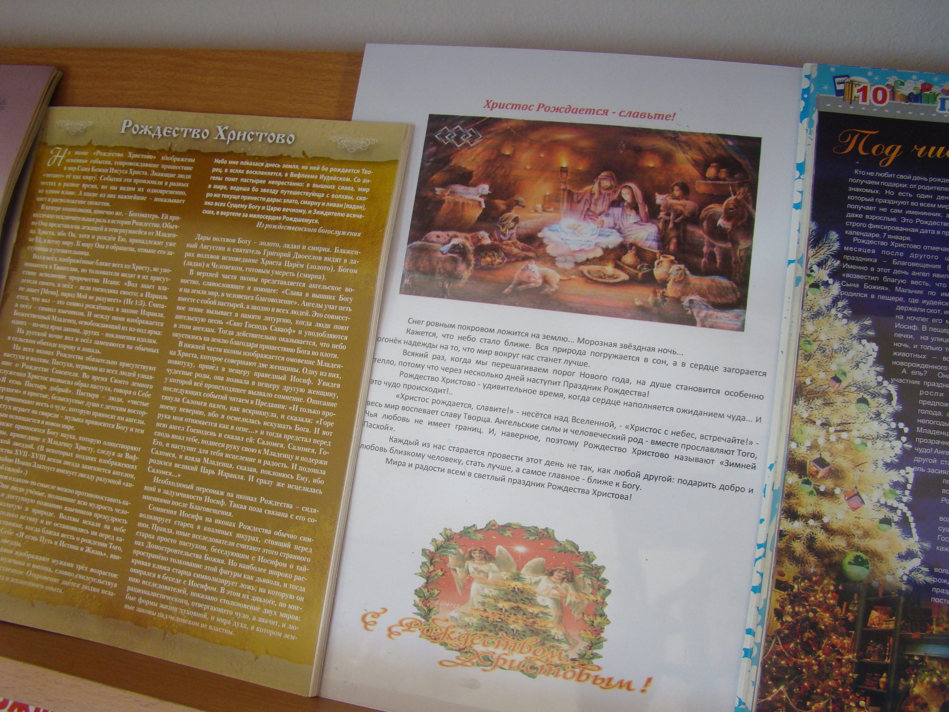 В читальном зале работает книжно-иллюстративная выставка «Свет Вифлеемской звезды», приуроченная к одному из самых значительных и светлых праздников– Рождеству.