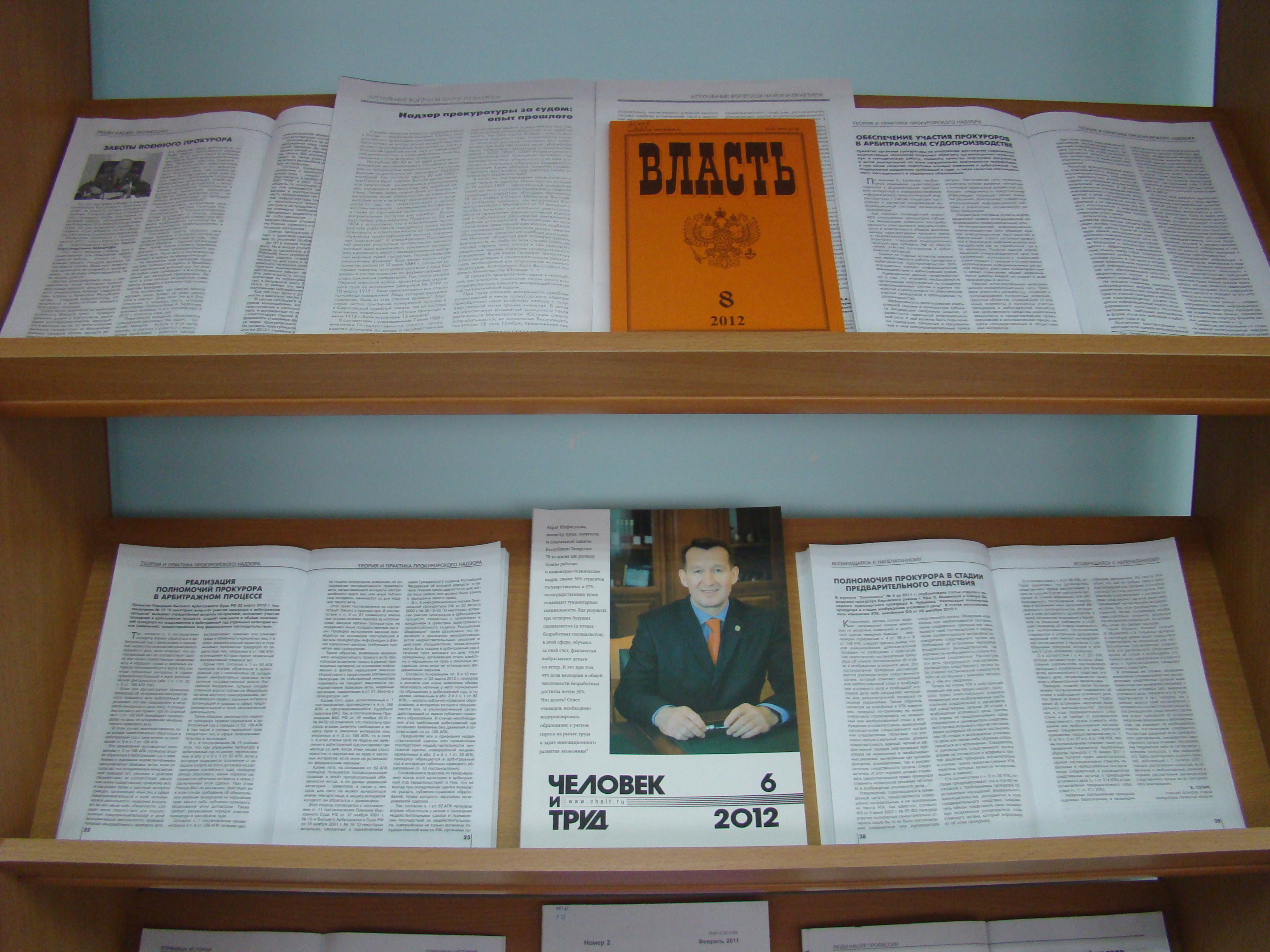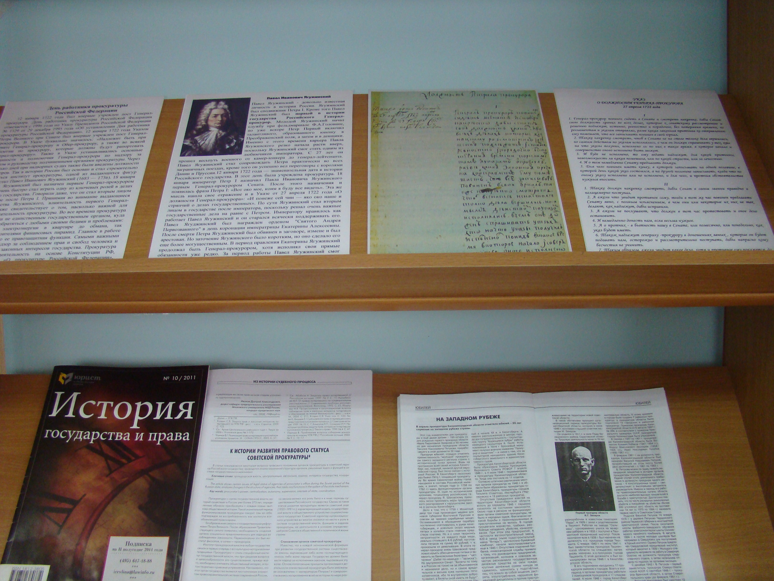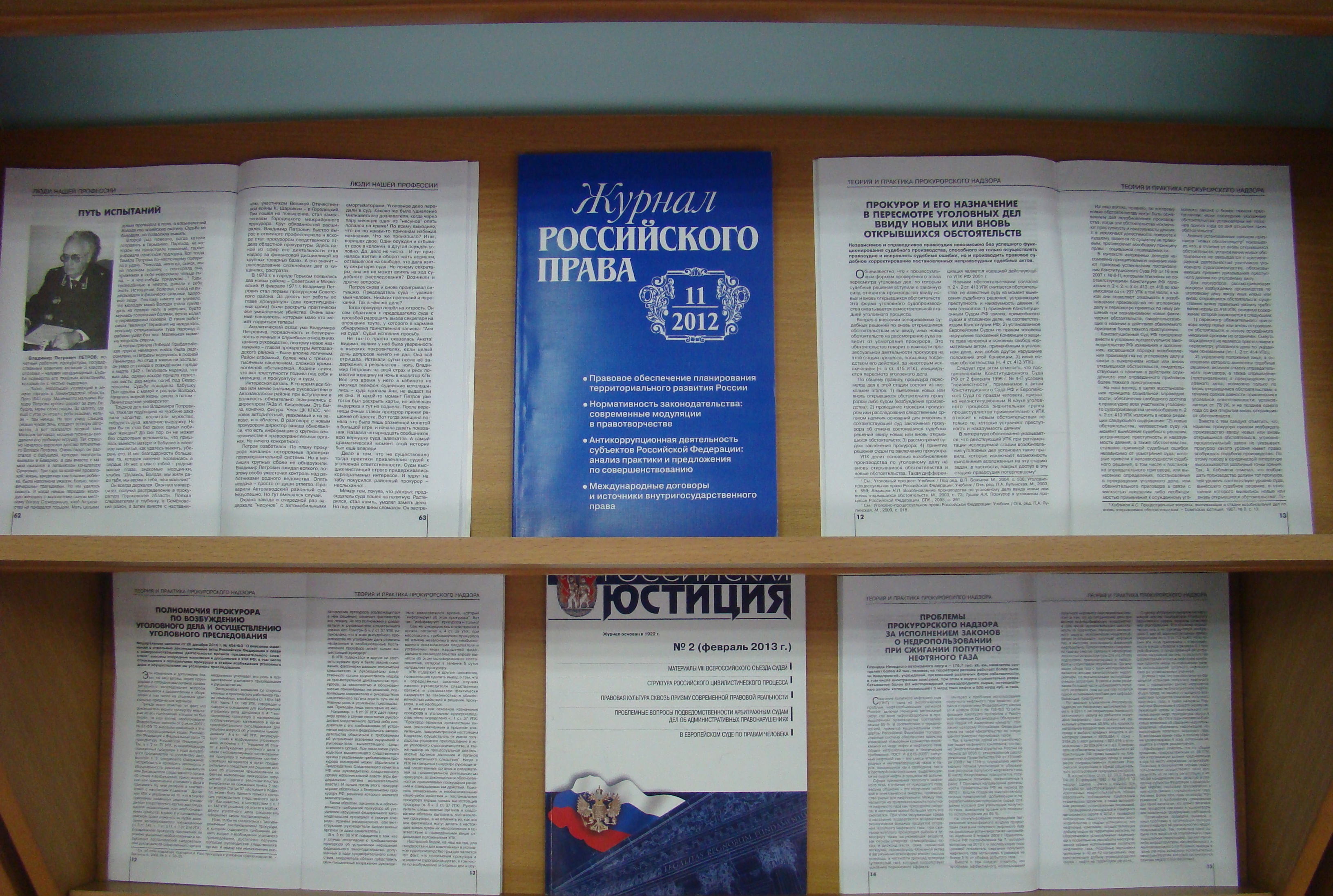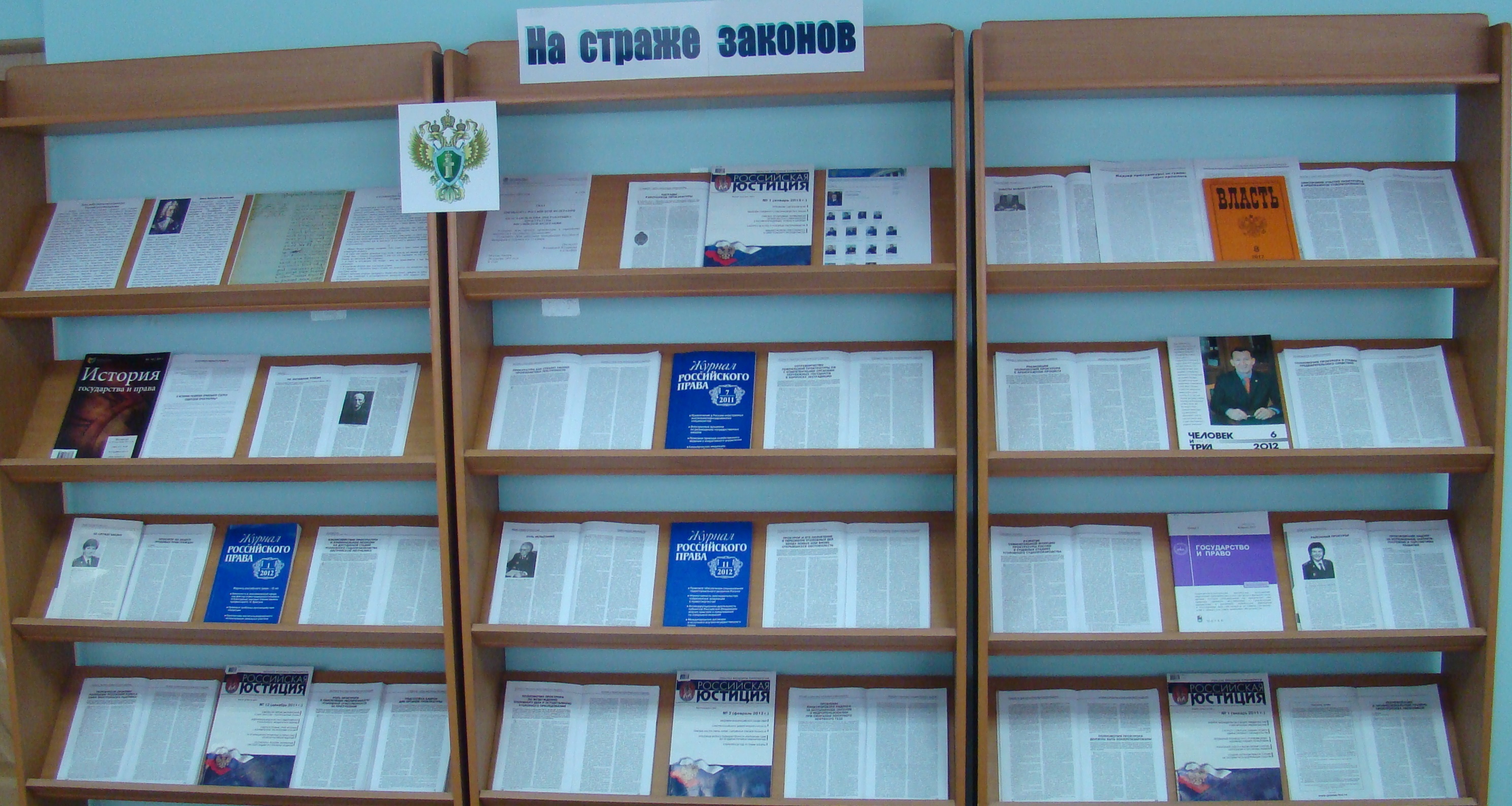 На выставке представлены материалы Президентской библиотеки им. Б.Н. Ельцина, а так же российские периодические издания: «Законность», «Государство и право», «История государства и права», «Право и политика», «Российская юстиция», «Закон», «Власть», «Журнал российского права».