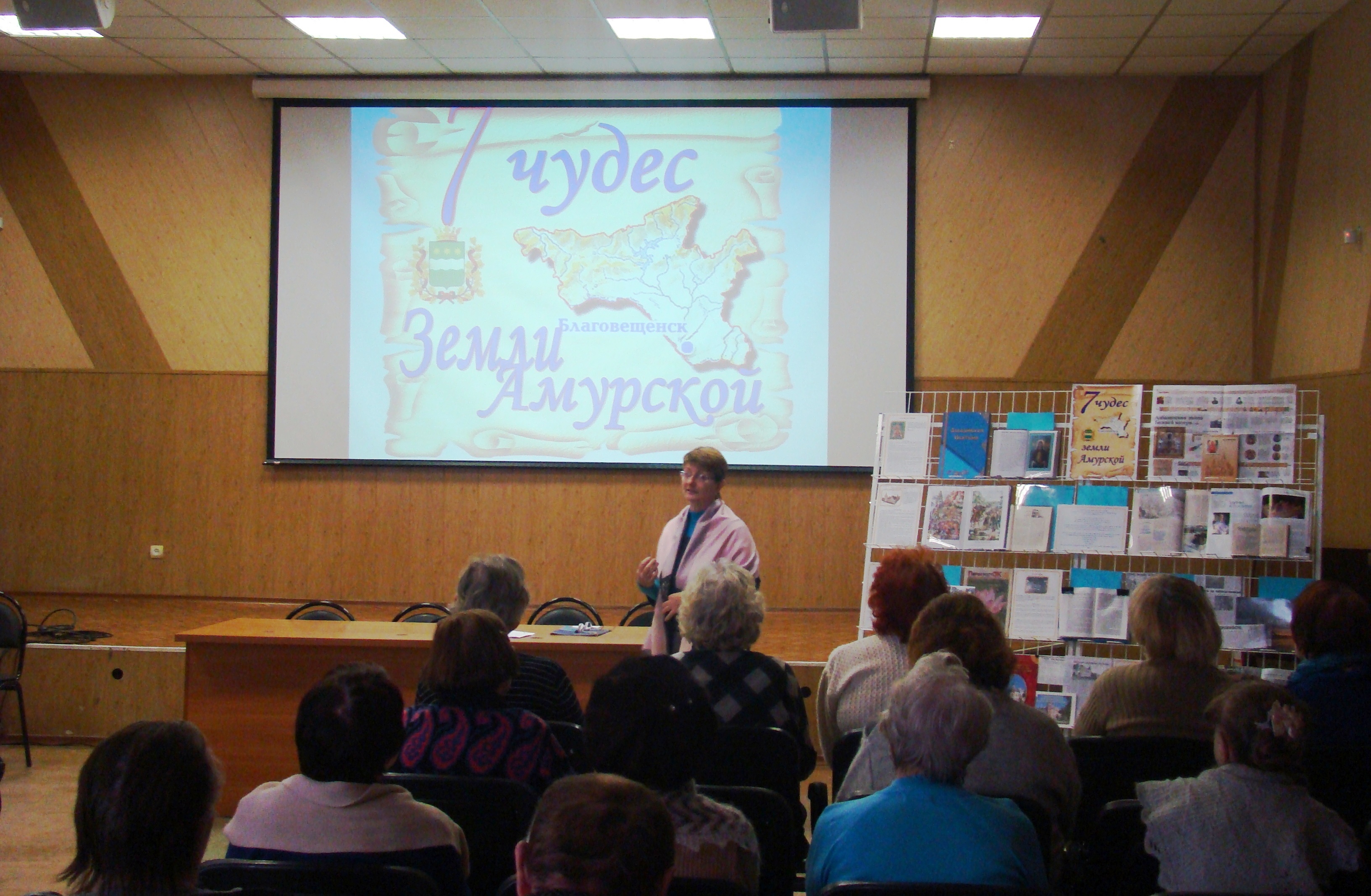 Также в рамках информационного часа сотрудники отдела краеведения и редких книг Марина Чеснокова и Александр Тарасов рассказали слушателям о семи чудесах Земли Амурской.