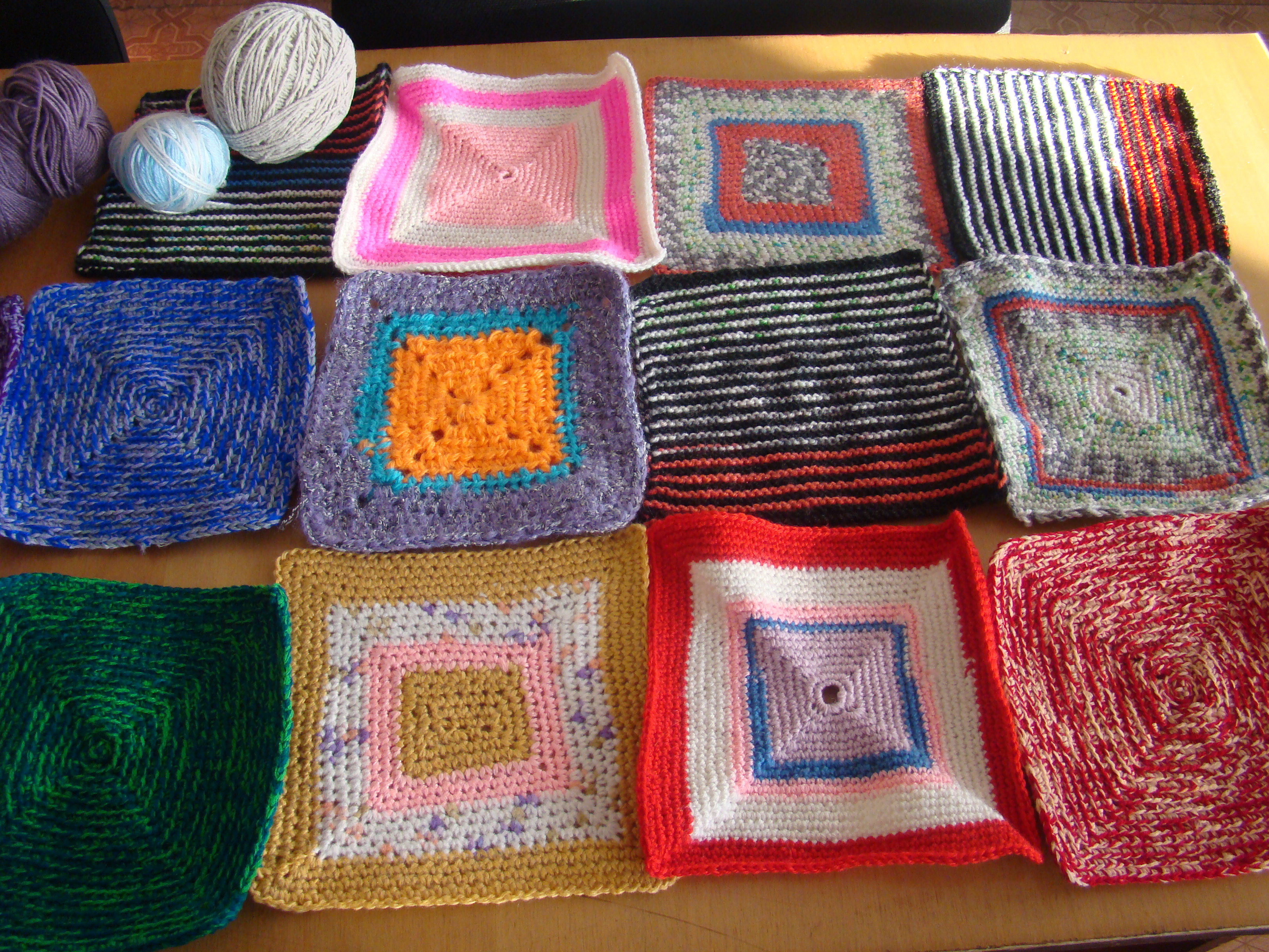 Как раз на очередном занятии клуба, рукодельницы вязали квадраты размером 16х16, из которых и будет собрано одеяло. Крючком работать или спицами - дело вкуса и привычки, главное вложить в это дело частичку своей души.