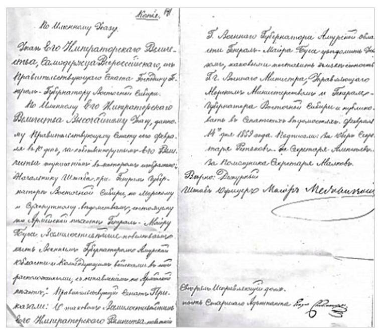 В декабре 1858 г. генерал-майор Буссе назначается военным губернатором Амурской области. Как многие военные администраторы, он был подготовлен к выполнению той части своих обязанностей, которая связана с командованием вверенными ему войсками, но не имел никакого опыта в гражданском управлении.