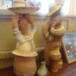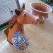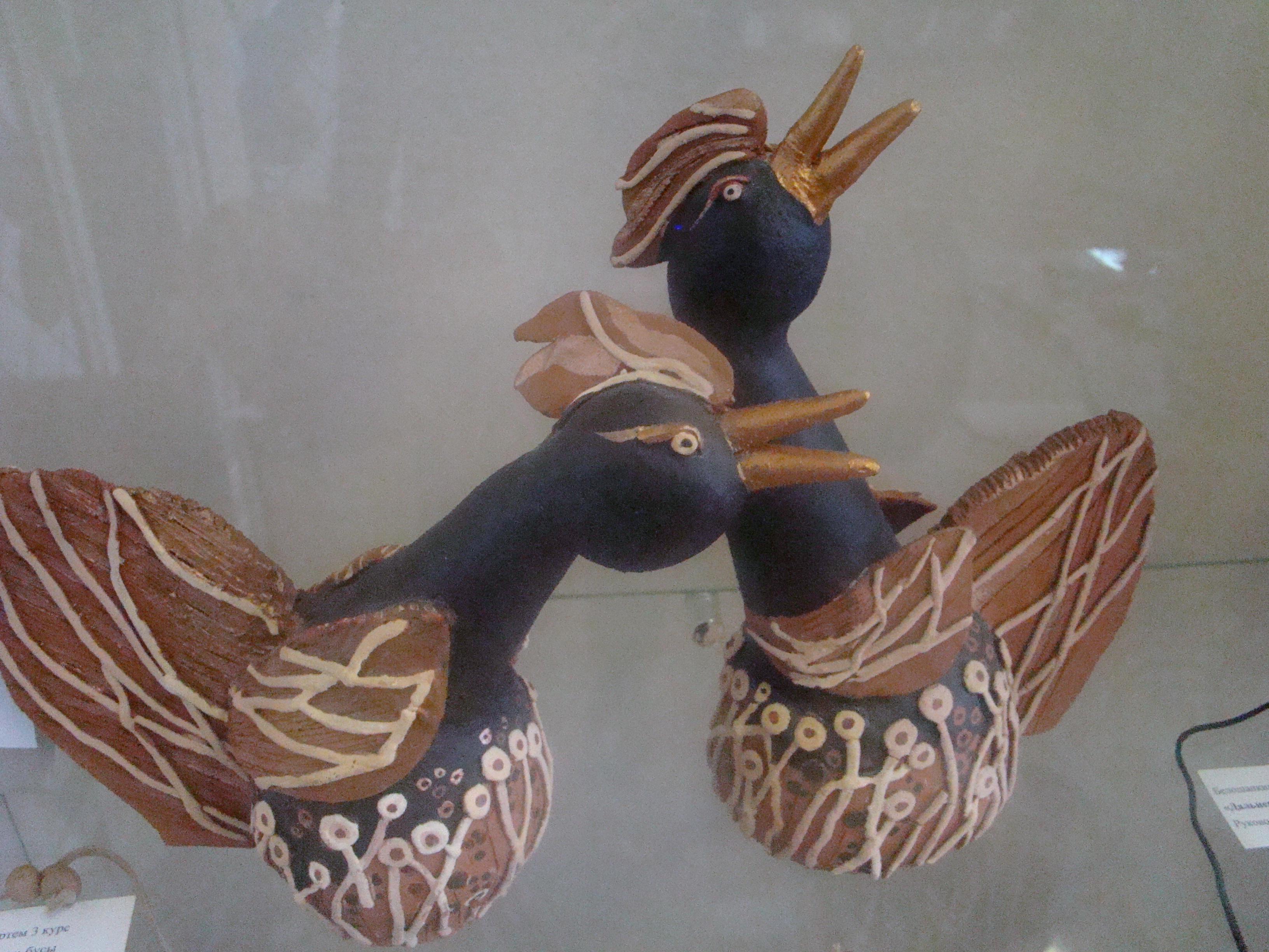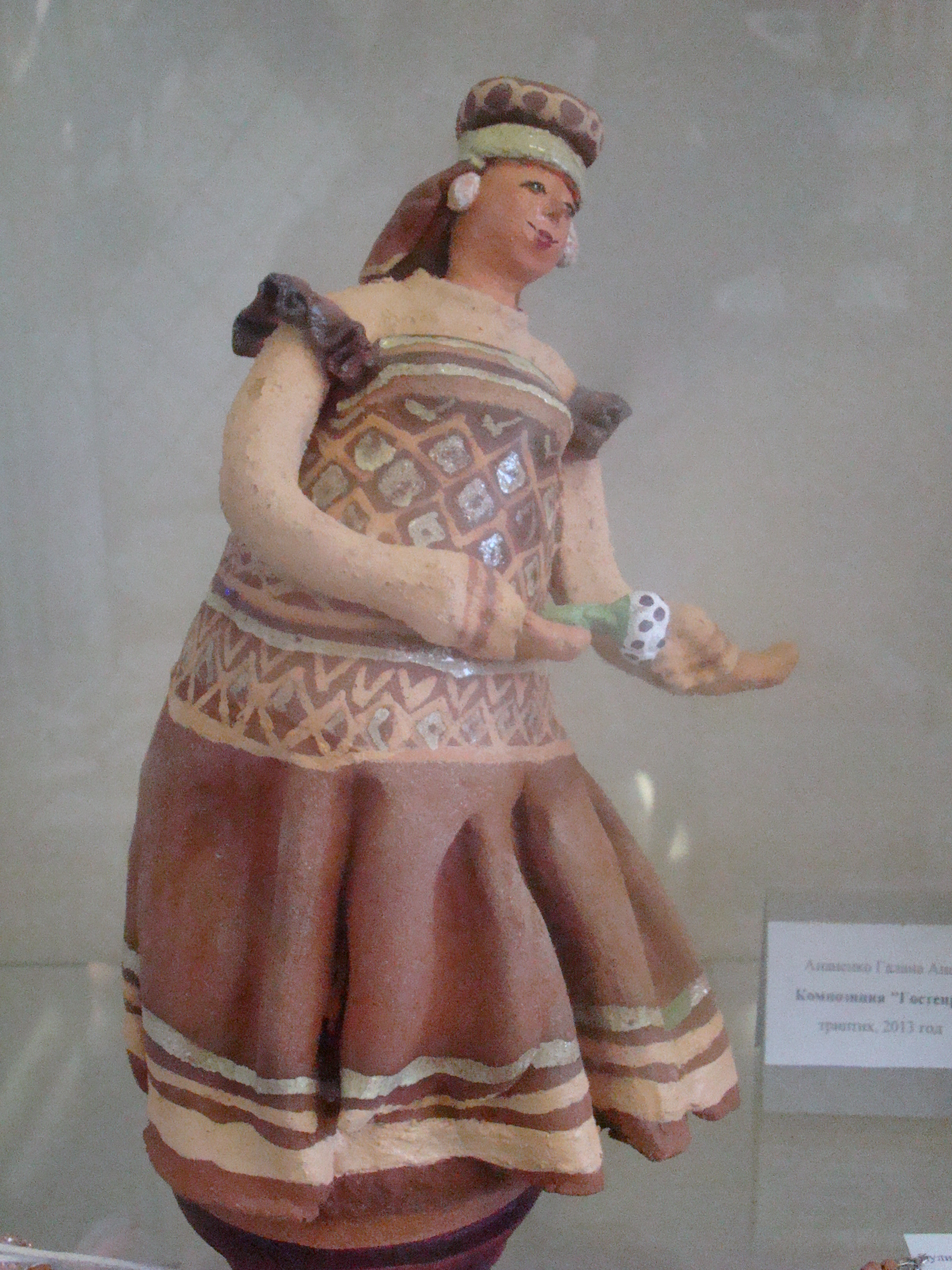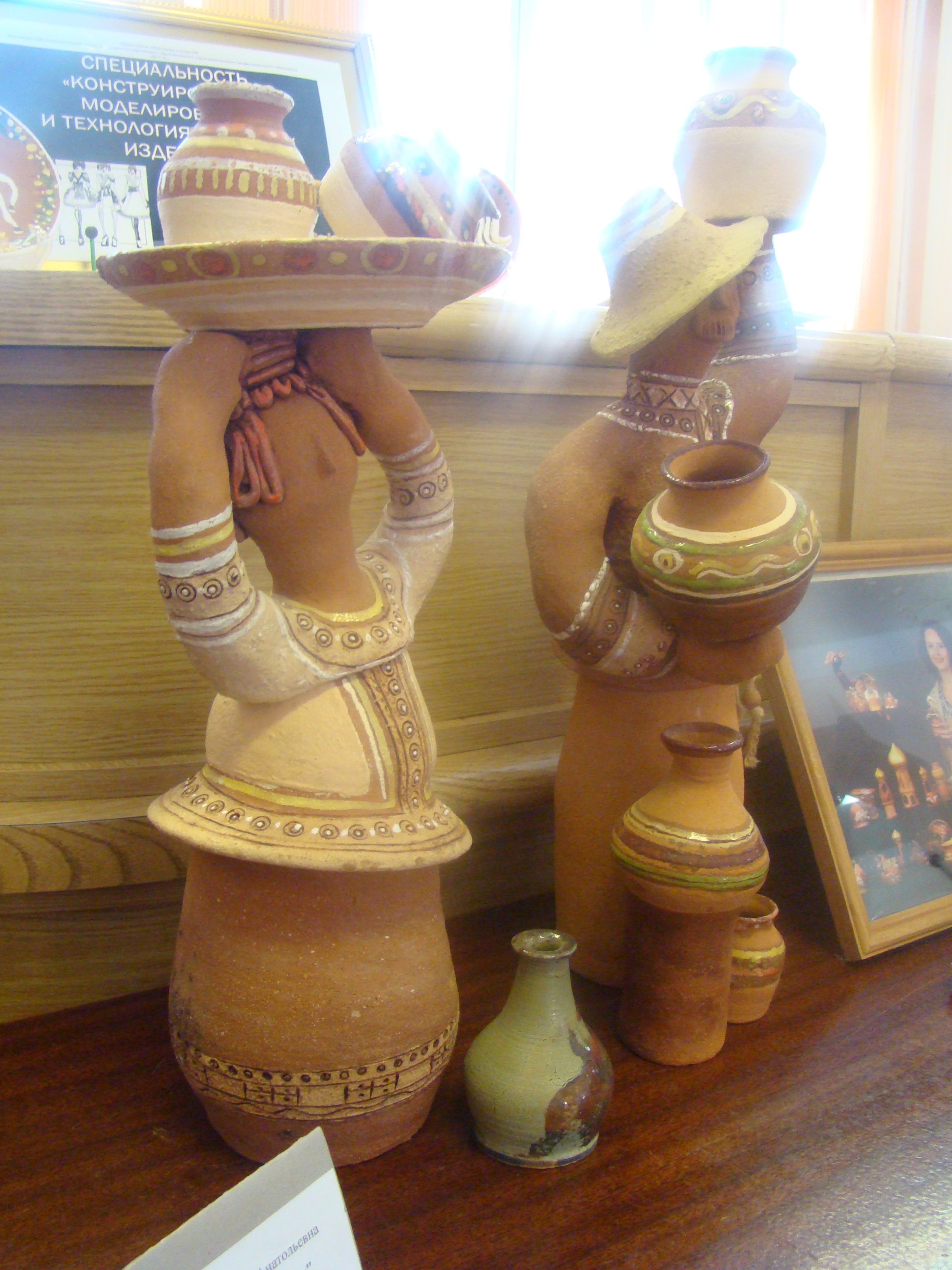 Галина Анатольевна работает с глиной, ангобами (жидкие глины), глазурями, но самая любимая – терракотовая глина, из которой выполнено большинство изделий. В ее работах хорошо отражена славянская тема: барышни в кокошниках, расписные горшочки, сказочные звери… Это ее любимые мотивы.