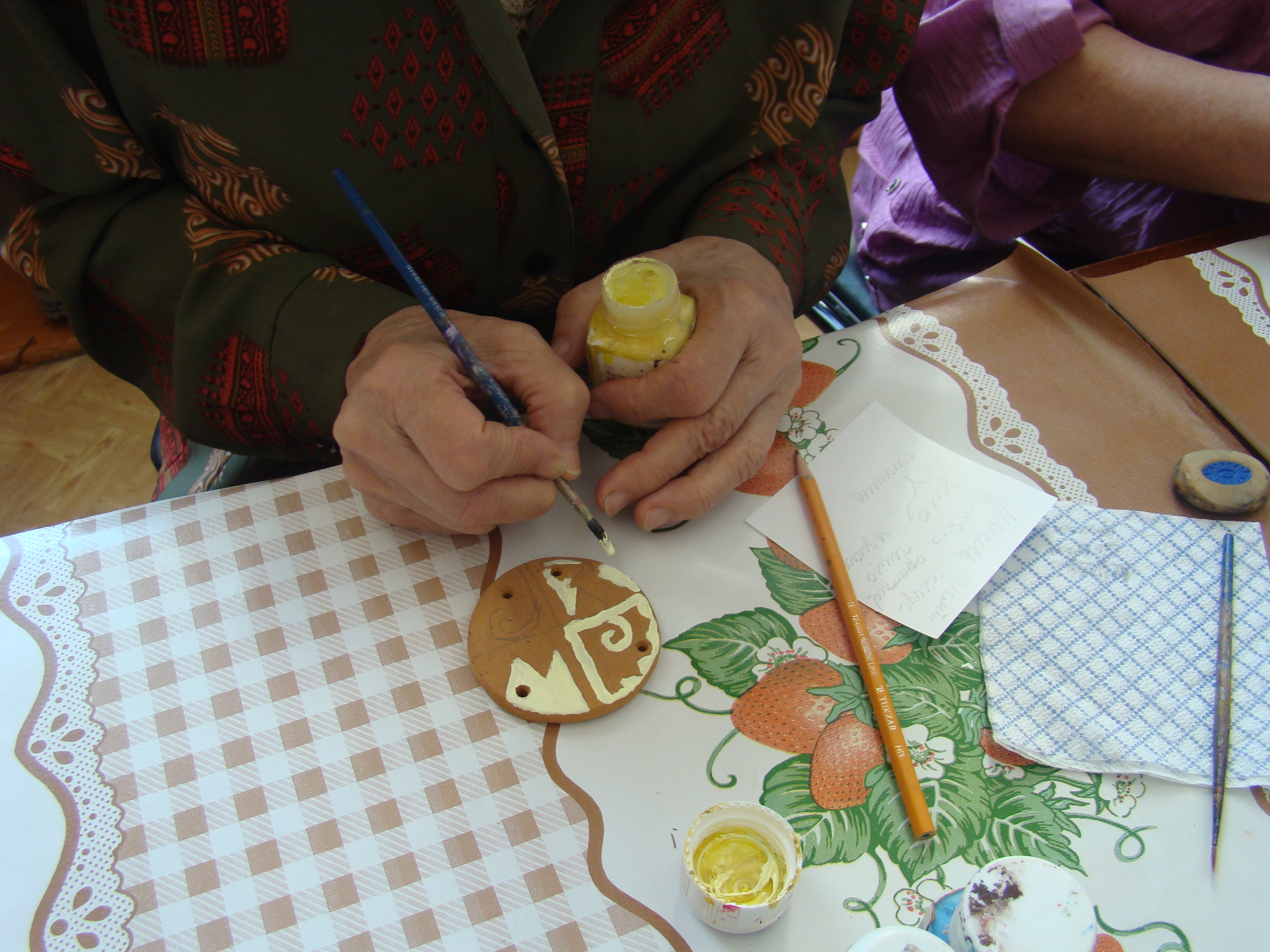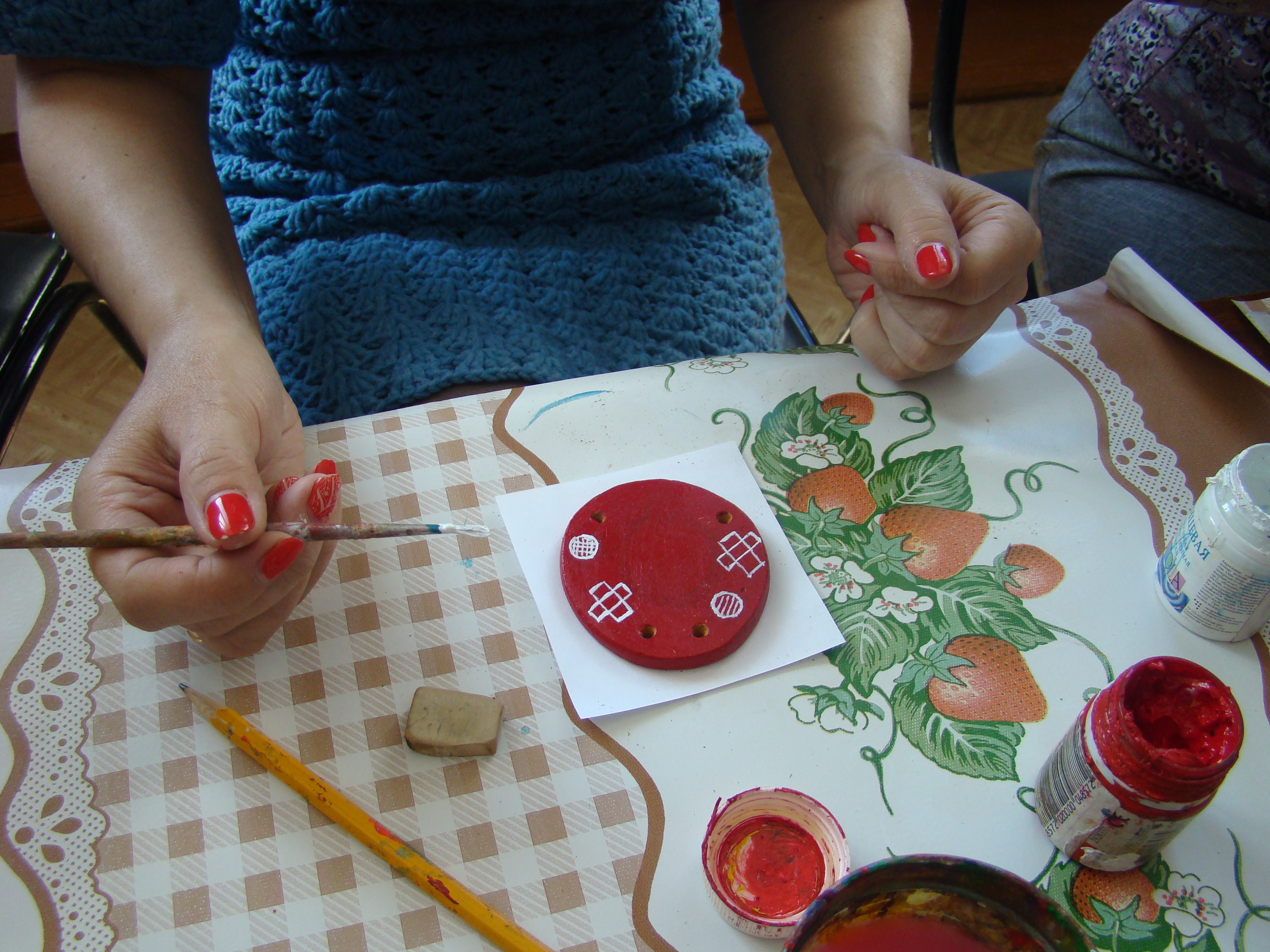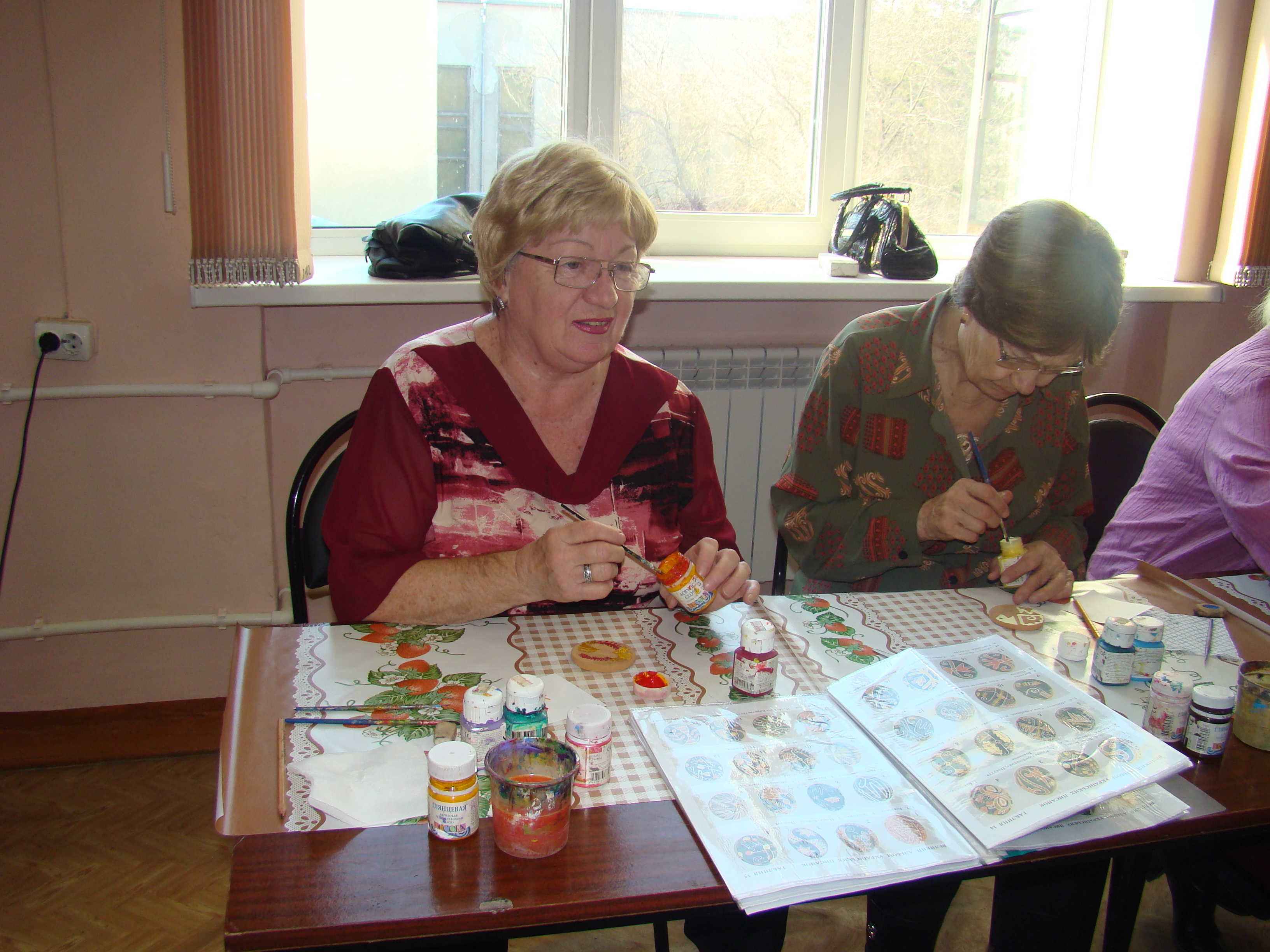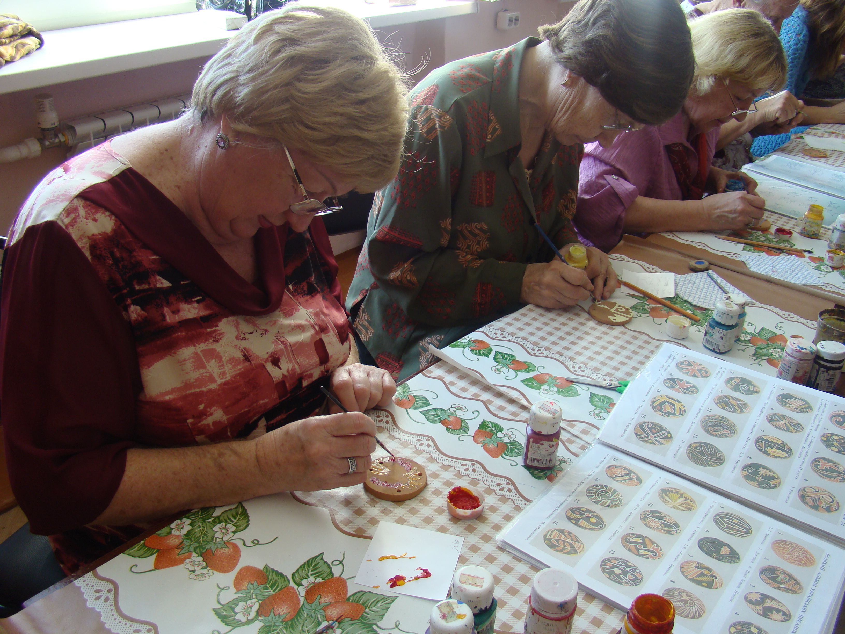Участники клуба «Ручная работа» на очередном занятии с помощью народного мастера Светланы Кушнарёвой создавали свою писанку, осваивали технику ее изготовления на керамической пластинке.