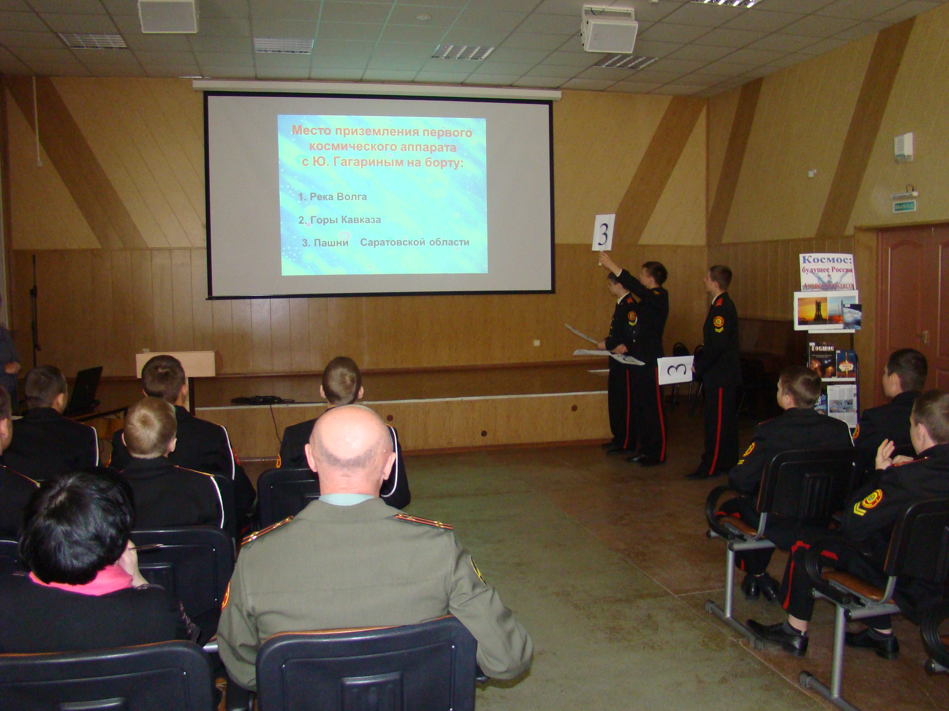 Накануне Всемирного Дня Авиации и Космонавтики отдел краеведения и редких книг провел краеведческий урок «Космонавтика: будущее России и Амурской области». Перед курсантами кадетского училища  выступил кандидат педагогических наук, профессор кафедры физики и методики обучения физике благовещенского государственного педагогического университета Валдимир Карацуба.