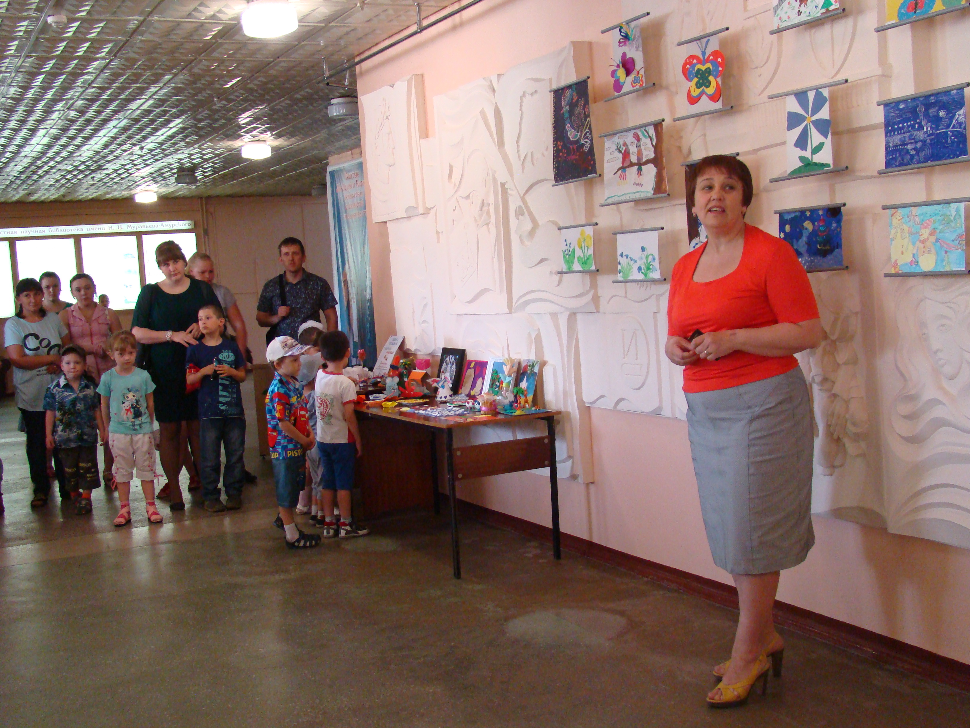 Директор Амурского областного детского центра медицинской реабилитации «Надежда» Демиденко Наталья Леонидовна присоединилась к поздравлениям, поблагодарила библиотеку за организацию выставки и рассказала о мероприятиях, которые ещё ждут детей на площадке Общественно-культурного центра и Городского парка.