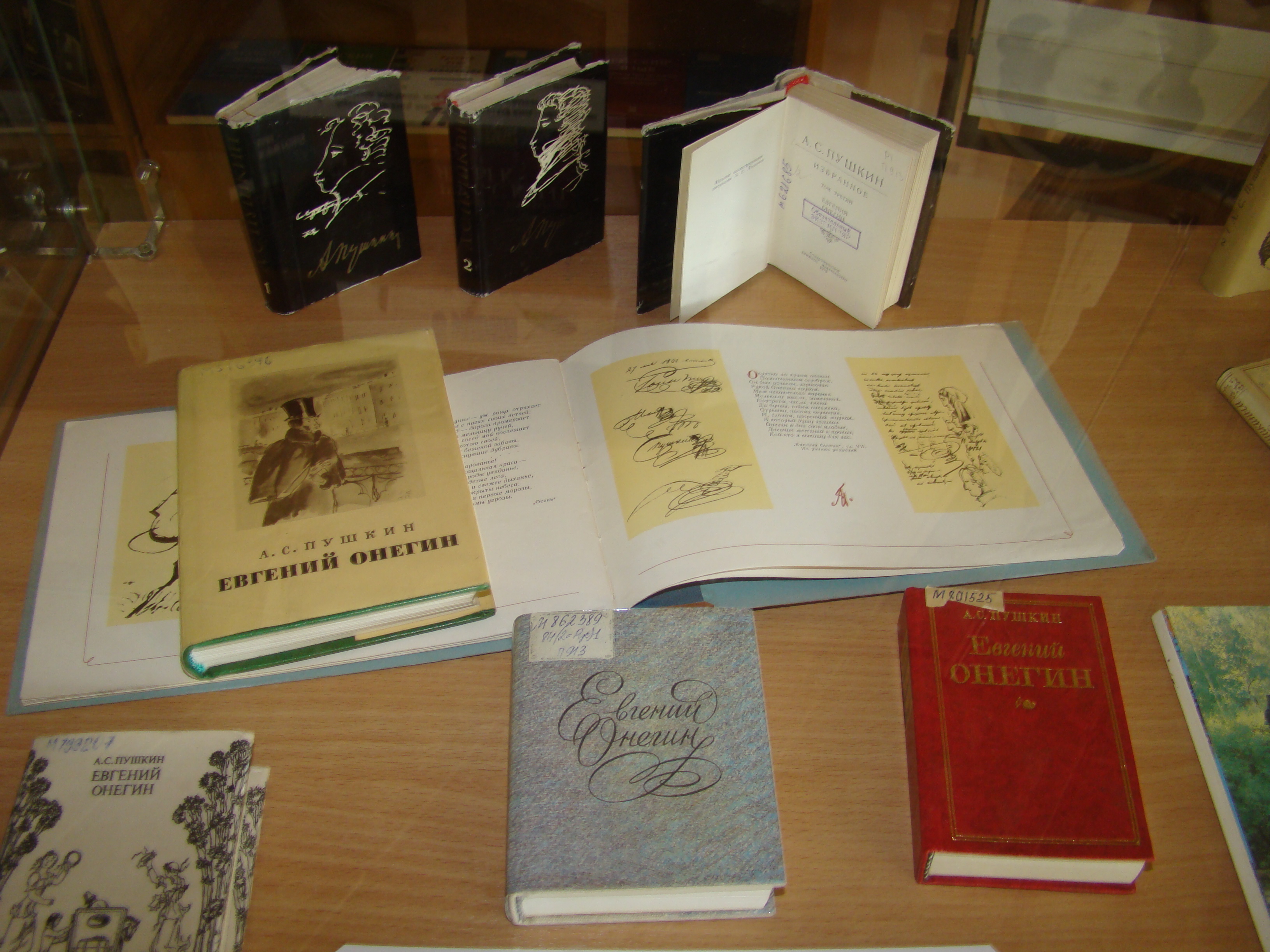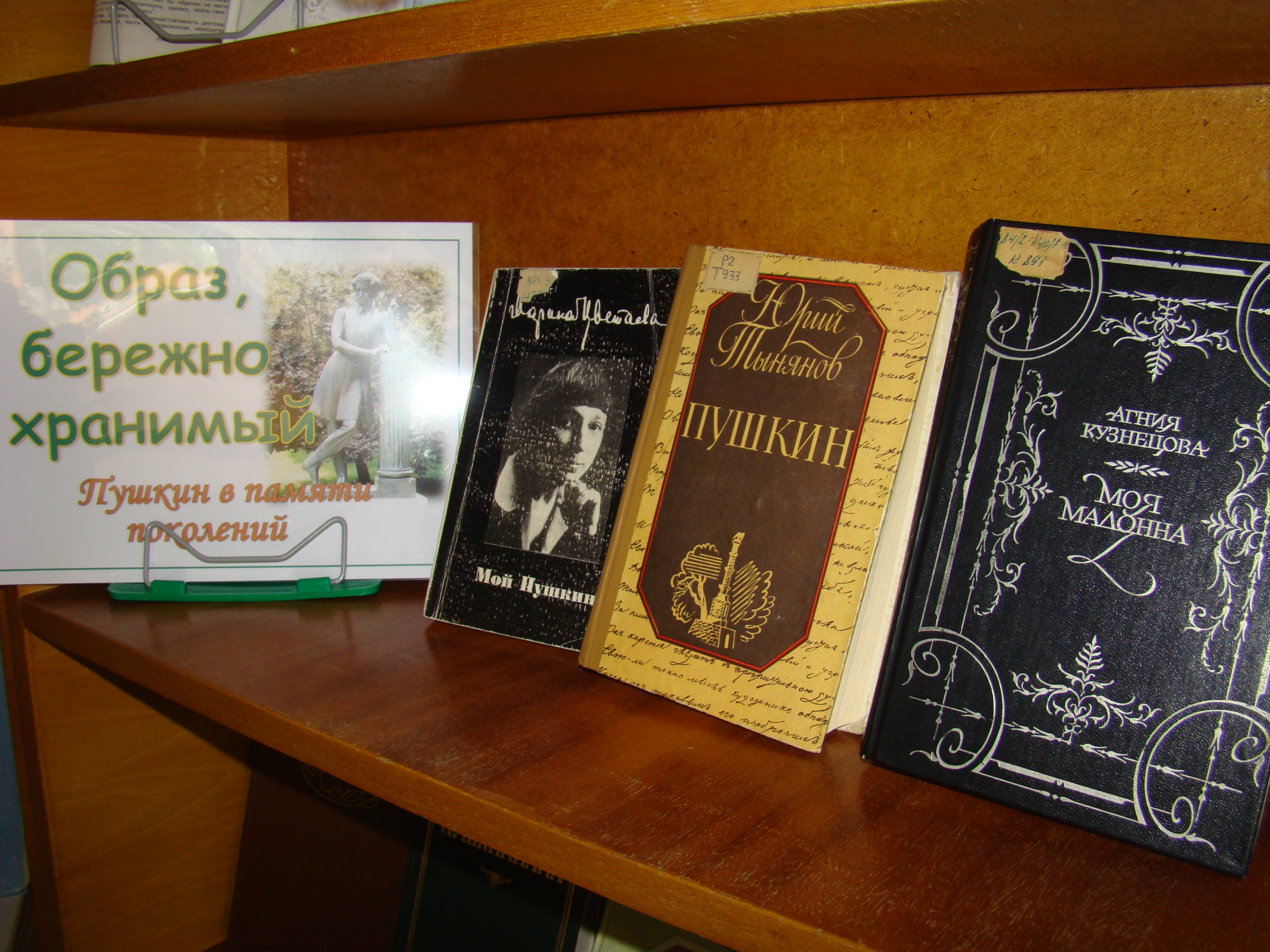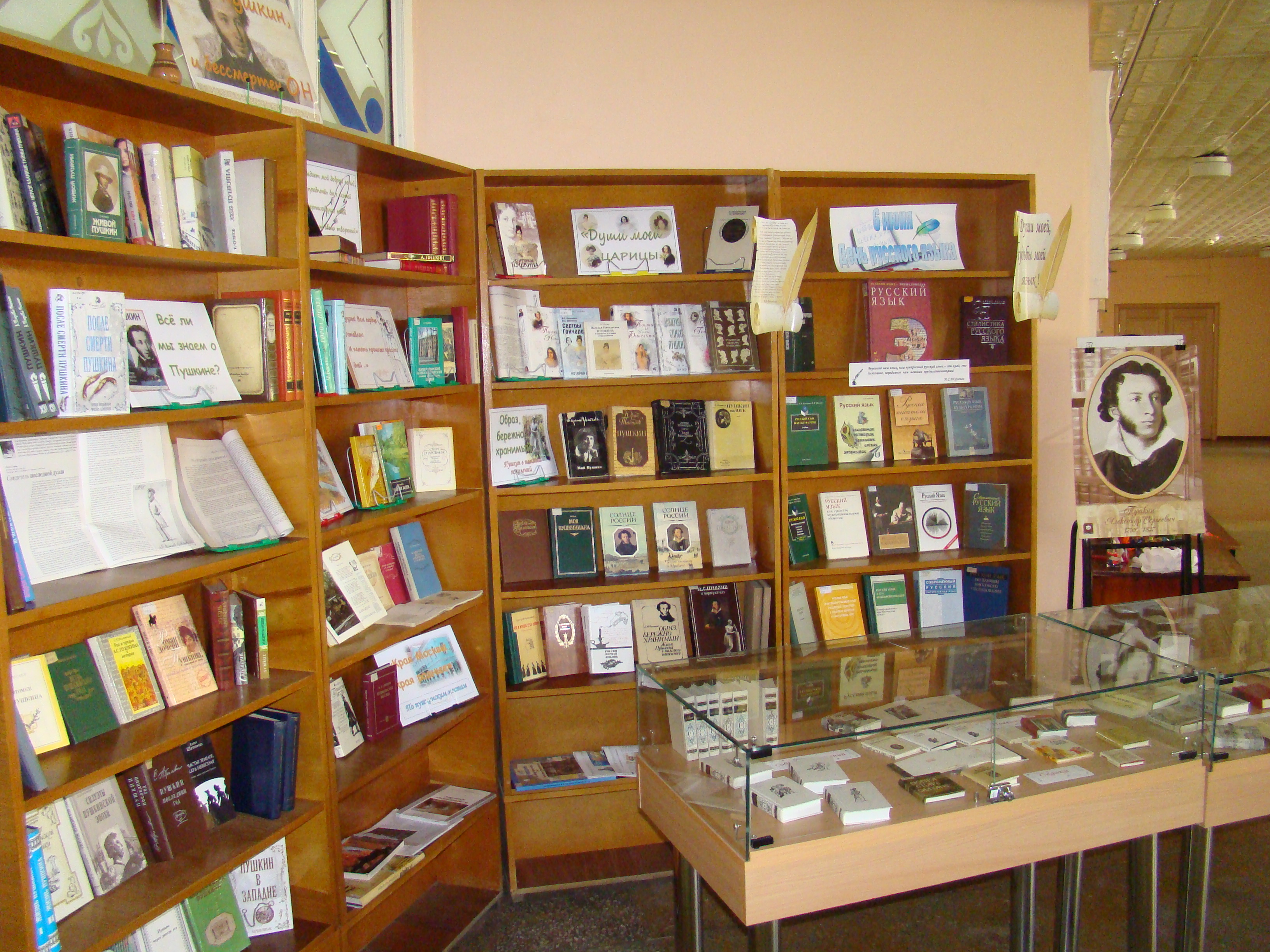 Развёрнутая выставка, оформленная в холле библиотеки, знакомит посетителей с литературой о жизни и творчестве писателя в разные периоды. Вы найдёте книги о его детских годах, родителях; няне – Арине Родионовне, сыгравшей огромную роль в становлении поэта.