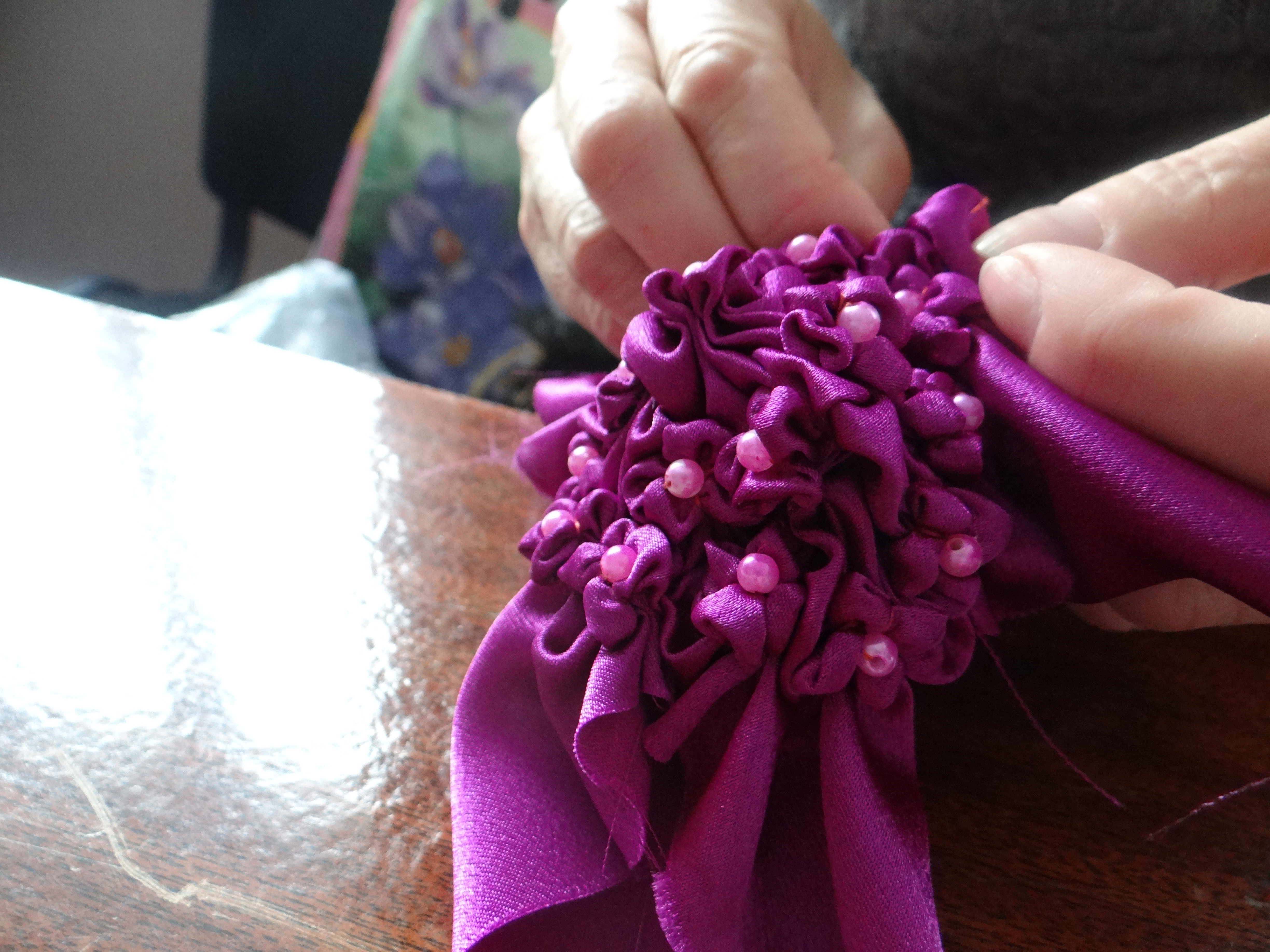 Полюбовавшись куклами, мы приступили к изучению новой техники. Занятие по освоению вышивки в стиле «комоно» провела Наталья Гехт. Несколько взмахов иглы по шелковой ткани и расцвели голубые, желтые, розовые гортензии. Мастер предложила оформить вышитые мотивы как игольницы. Но умелые руки могут превратить изделие в брошь или заколку, брелок или сувенир.