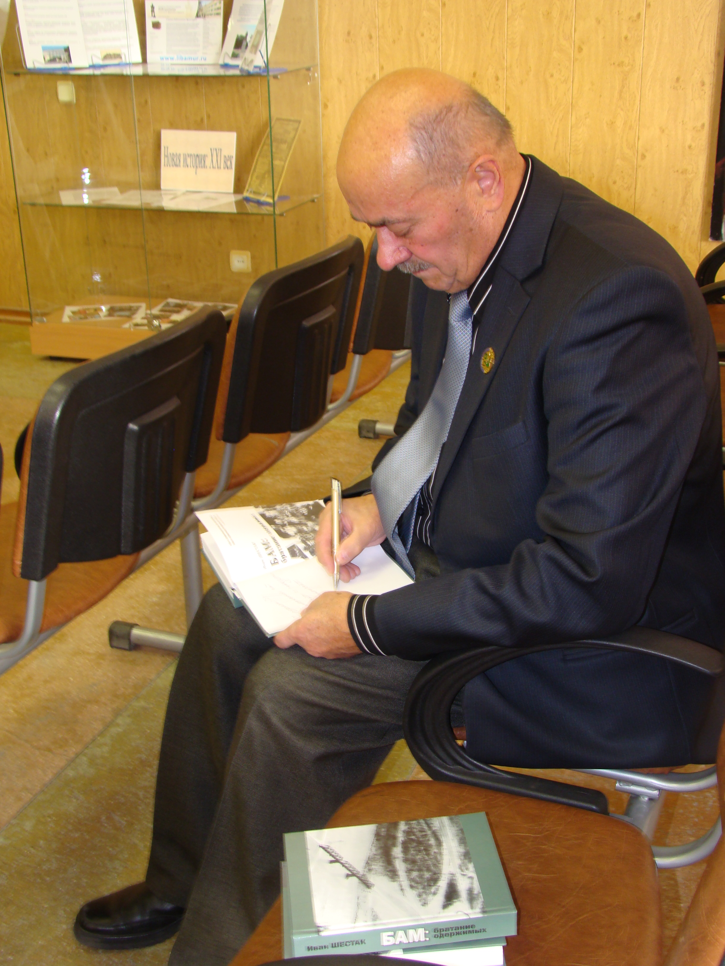 Бамовский поэт, член Союза журналистов России Иван Шестак презентовал свою новую книгу «БАМ-АЯМ. От Амура до Лены», рассказал о ранее вышедших книгах, прочел стихи, написанные час назад, по пути на встречу, ответил на вопросы слушателей.