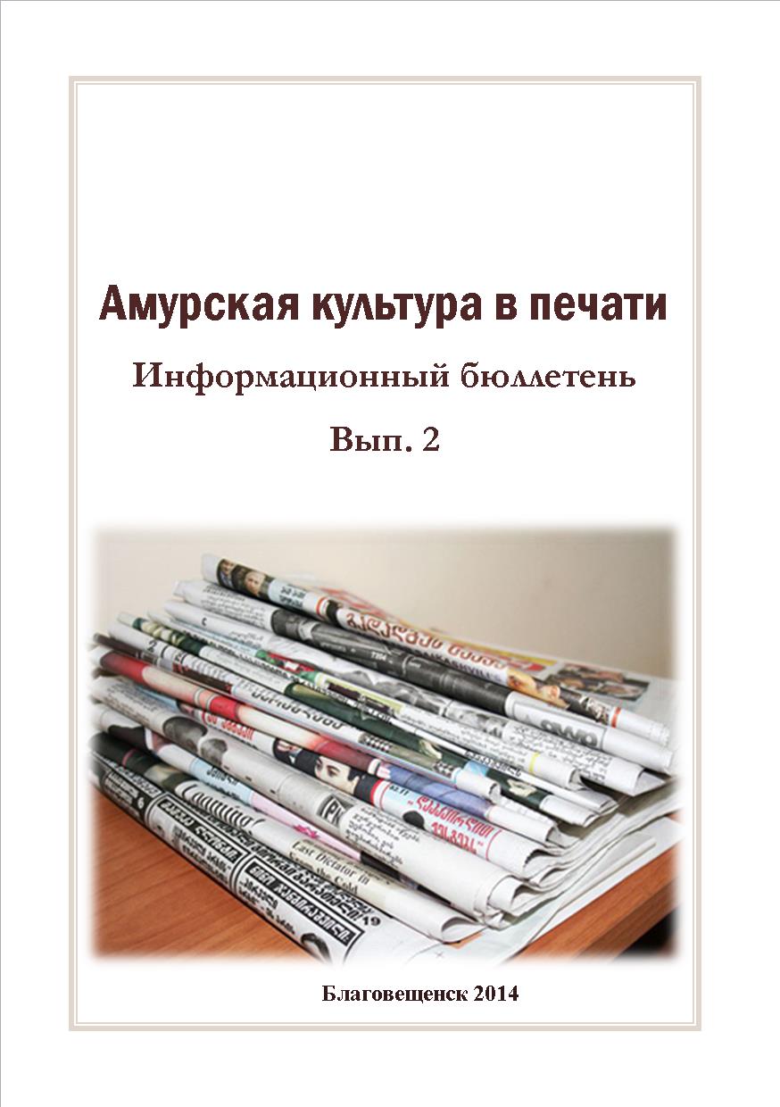 Амурской областной научной библиотекой издан информационный бюллетень «Амурская культура в печати. 2014г. Вып.2». Составитель издания В.В. Смирнова, главный библиограф отдела краеведения и редких книг.