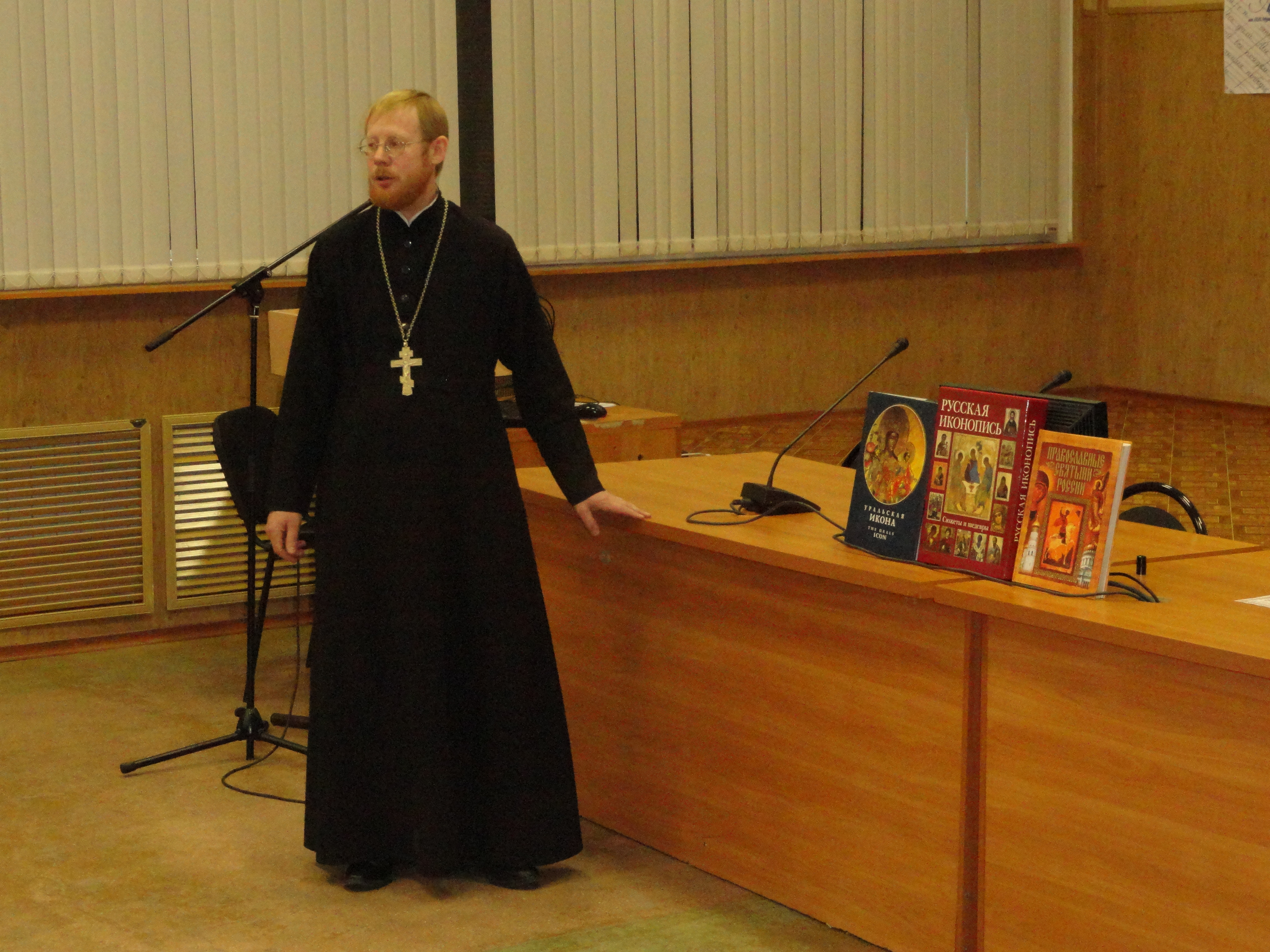 С приветственным словом от Благовещенской епархии выступил священник Александр Донесенко, служащий Кафедрального собора города Благовещенска. Он выразил благодарность тем, чьими трудами организовалась, работает и пополняется Православная библиотека.
