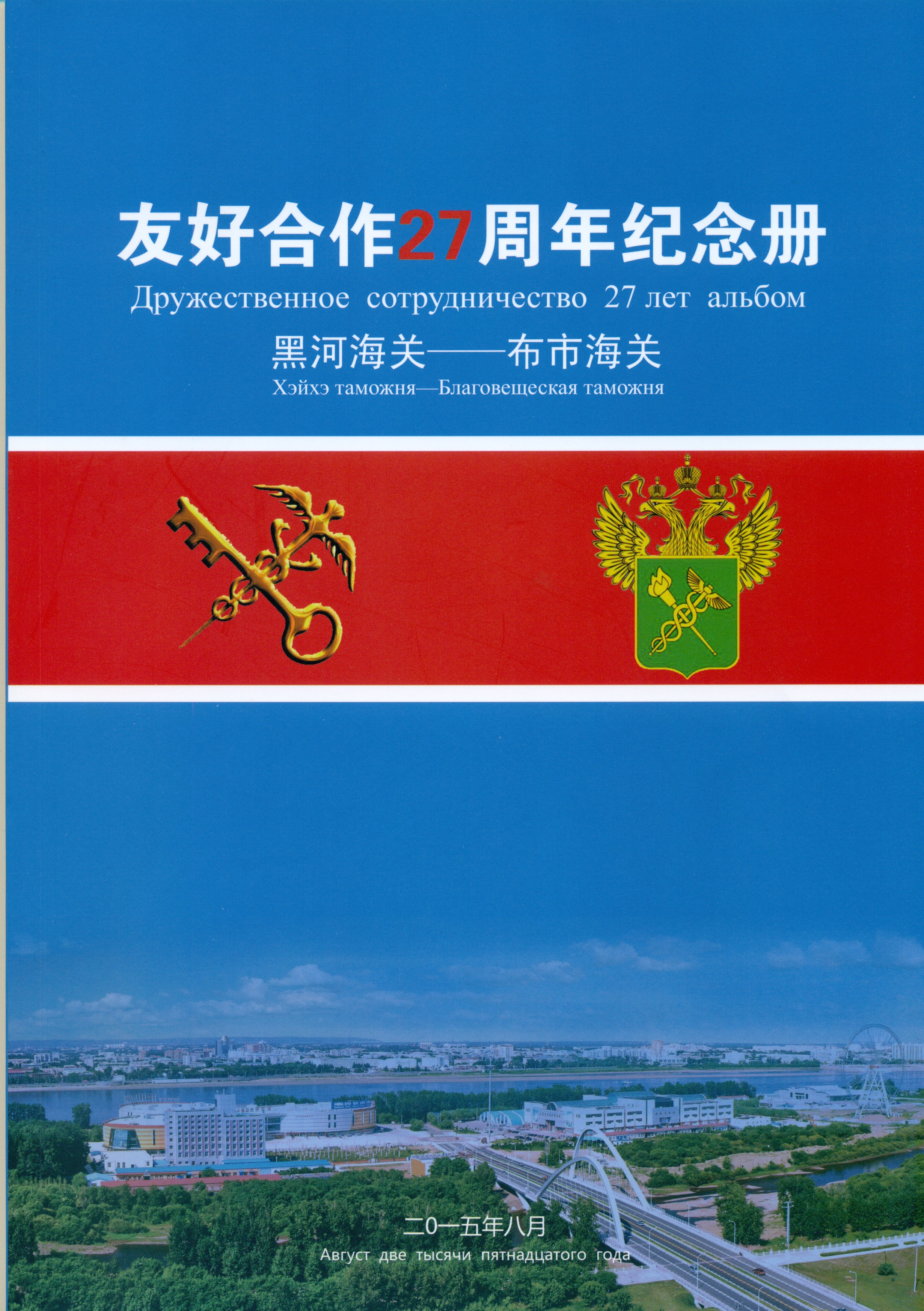 Издание содержит информацию об истории таможенного сотрудничества Благовещенской таможни с таможнями КНР, начиная с 1986 года. На 60 страницах размещено более 200 фотографий, сделанных во время рабочих встреч, совместных культурных и спортивных мероприятий.
