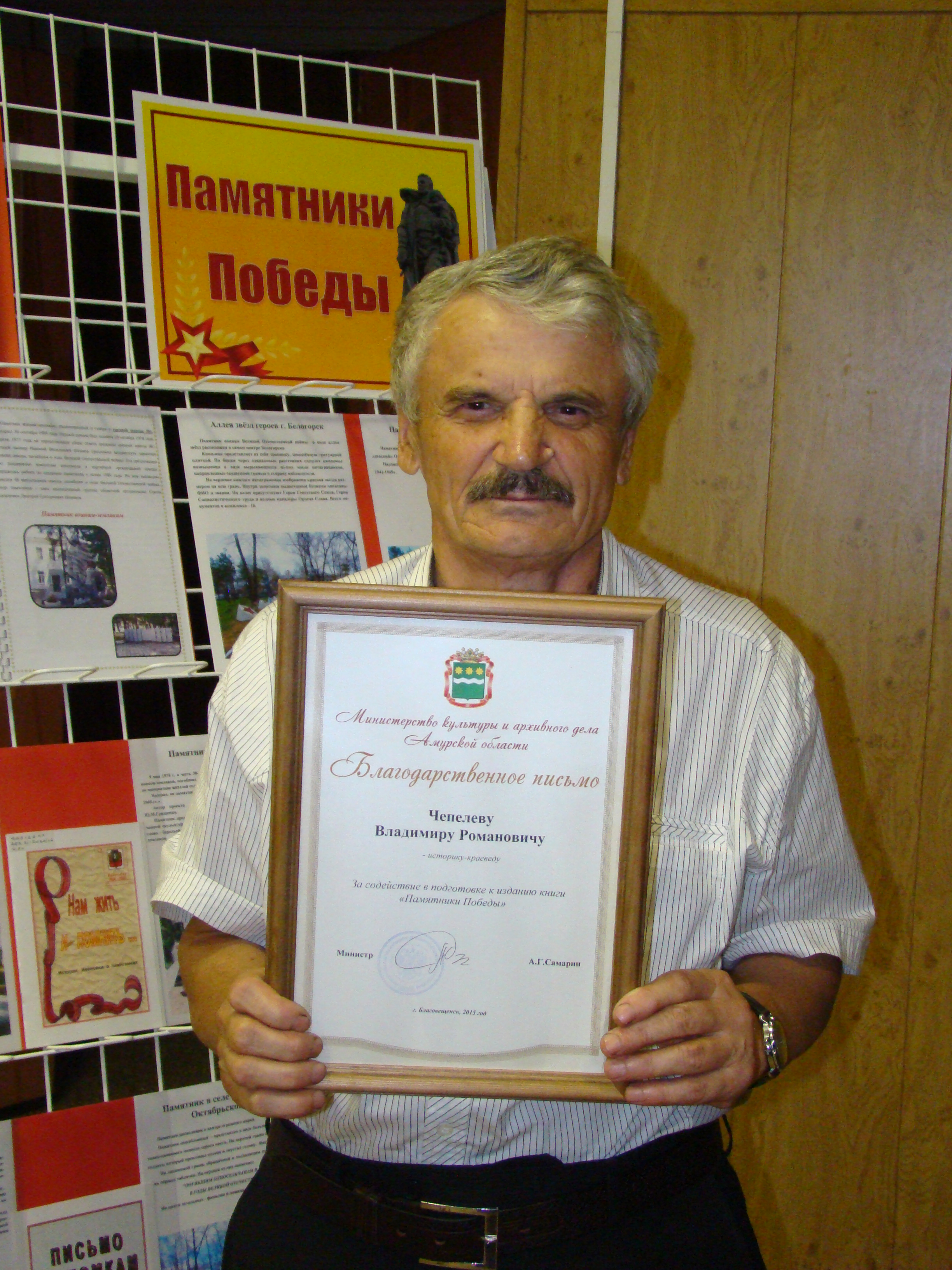 2 сентября, в день 70-летия со дня окончания крупнейшего вооруженного конфликта в истории человечества – Второй мировой войны, в областной научной библиотеке состоялась презентация книги "Памятники Победы", подготовленной и выпущенной в свет Центром по сохранению историко-культурного наследия Амурской области, при организационной поддержке Министерства культуры и архивного дела Амурской области.