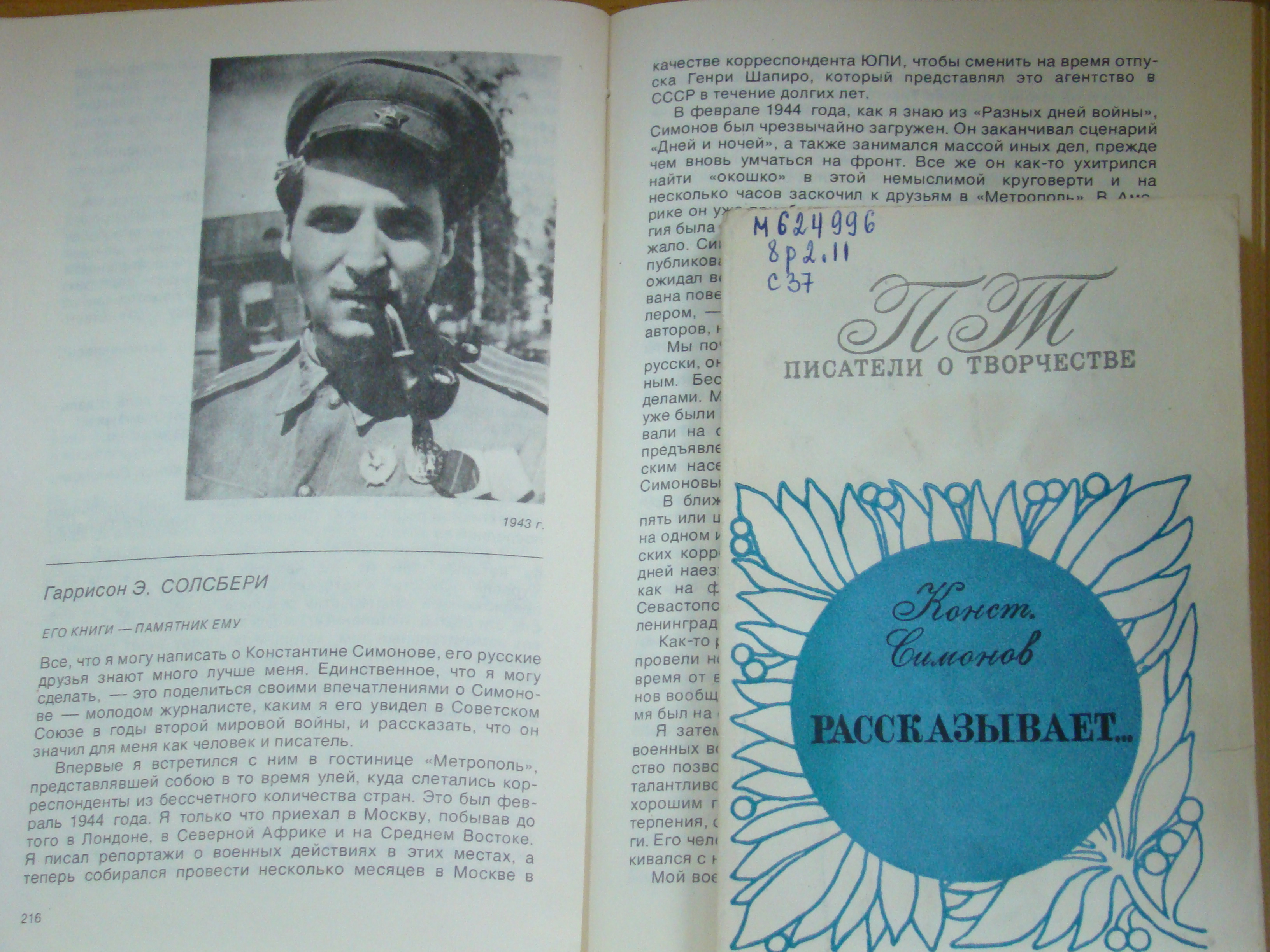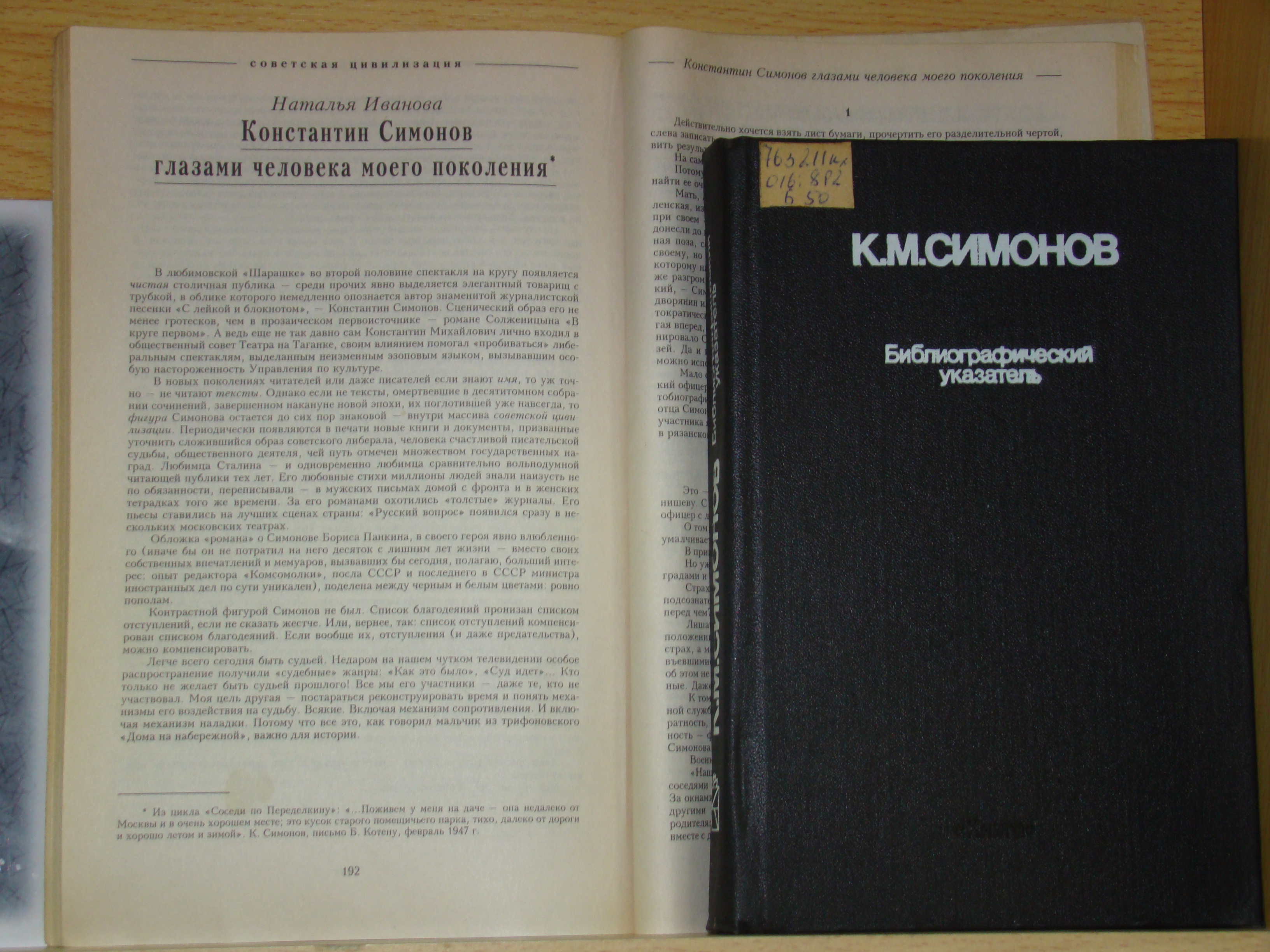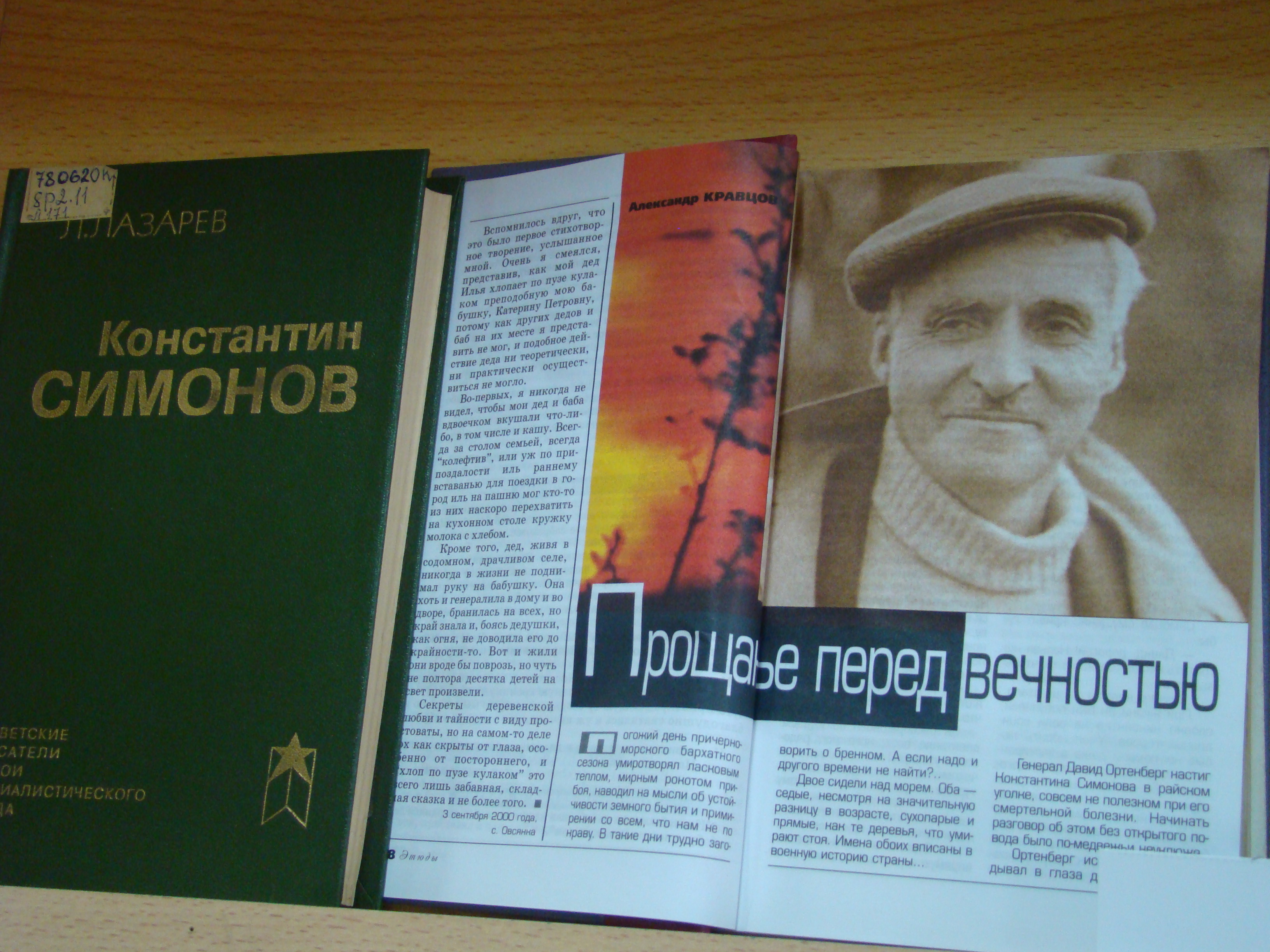 К 100-летнему юбилею писателя Амурской областной научной библиотекой подготовлена и издана беседа о творчестве Константина Симонова «Писатель-фронтовик», издание также представлено на выставке.