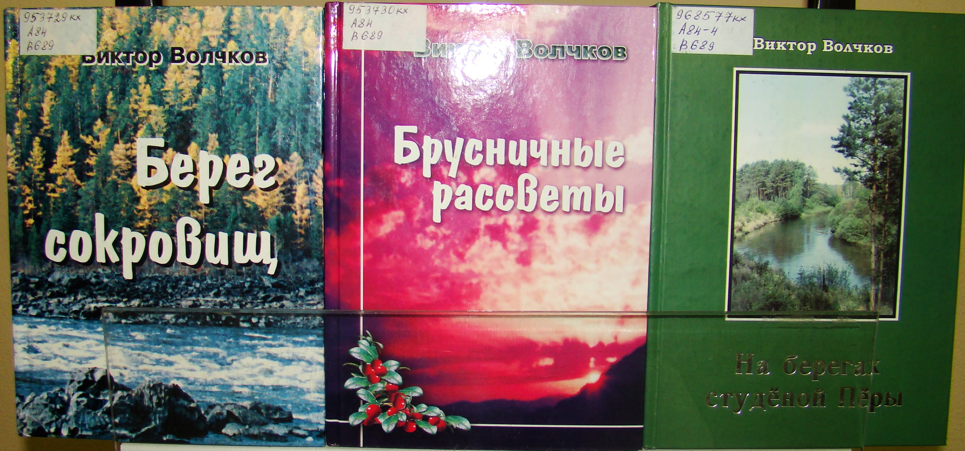 Книги Виктора Волчкова, «Брусничные рассветы», «Берег сокровищ», «На берегах студёной Пёры» и другие позволяют побродить по амурской тайге, посидеть у студёных быстрых речек, увидеть неповторимые рассветы и закаты, услышать настороженные посвистывания рябчиков...