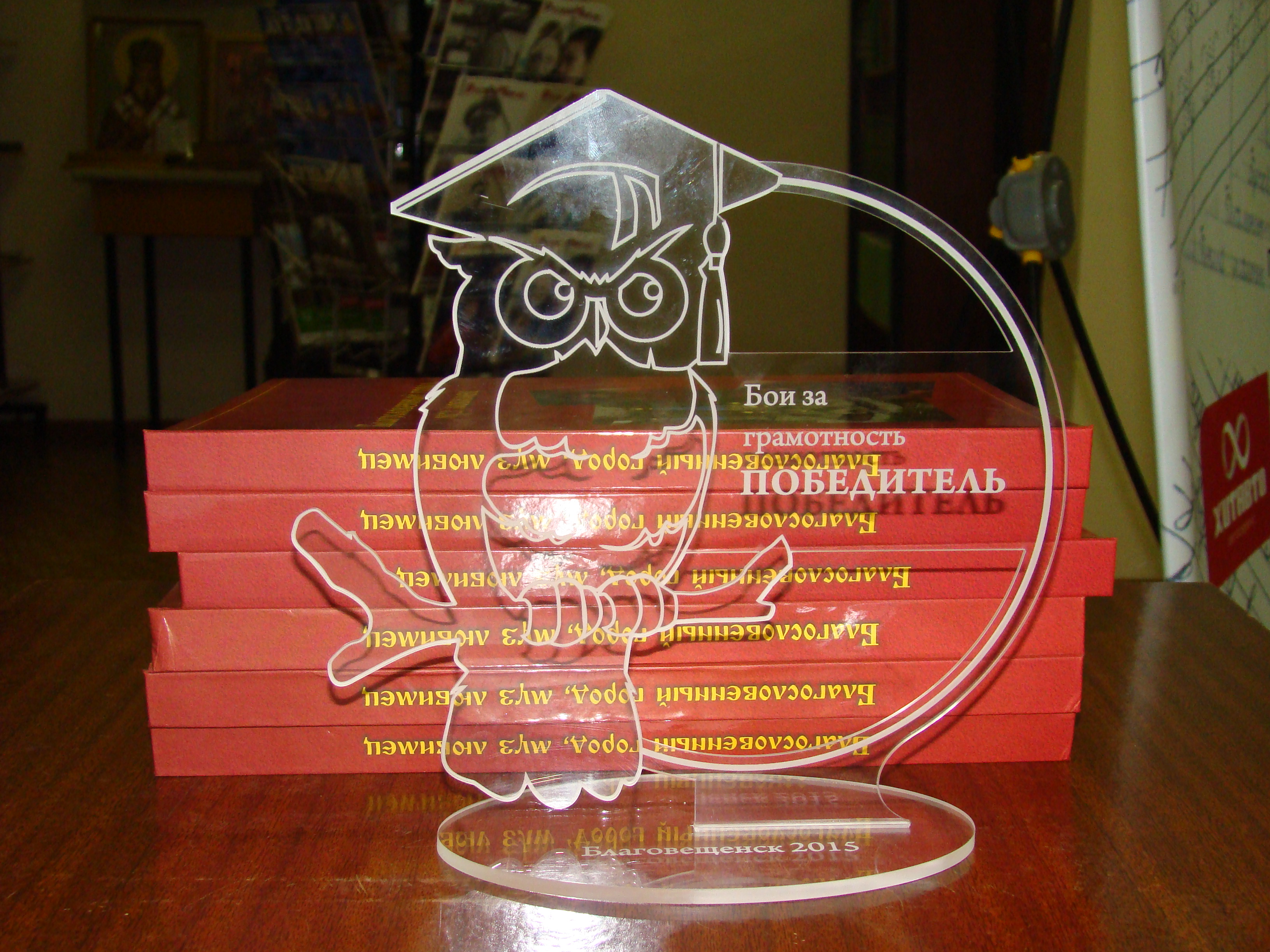 Команде-победительнице был вручён главный приз состязания – Мудрая сова. Книги и сладкие призы получили призёры и участники игры. Победителям и призёрам достались и подарки от спонсора игры автоцентра «ХИТАВТО», за что выражаем благодарность руководителю компании Дмитрию Бимурзаеву.