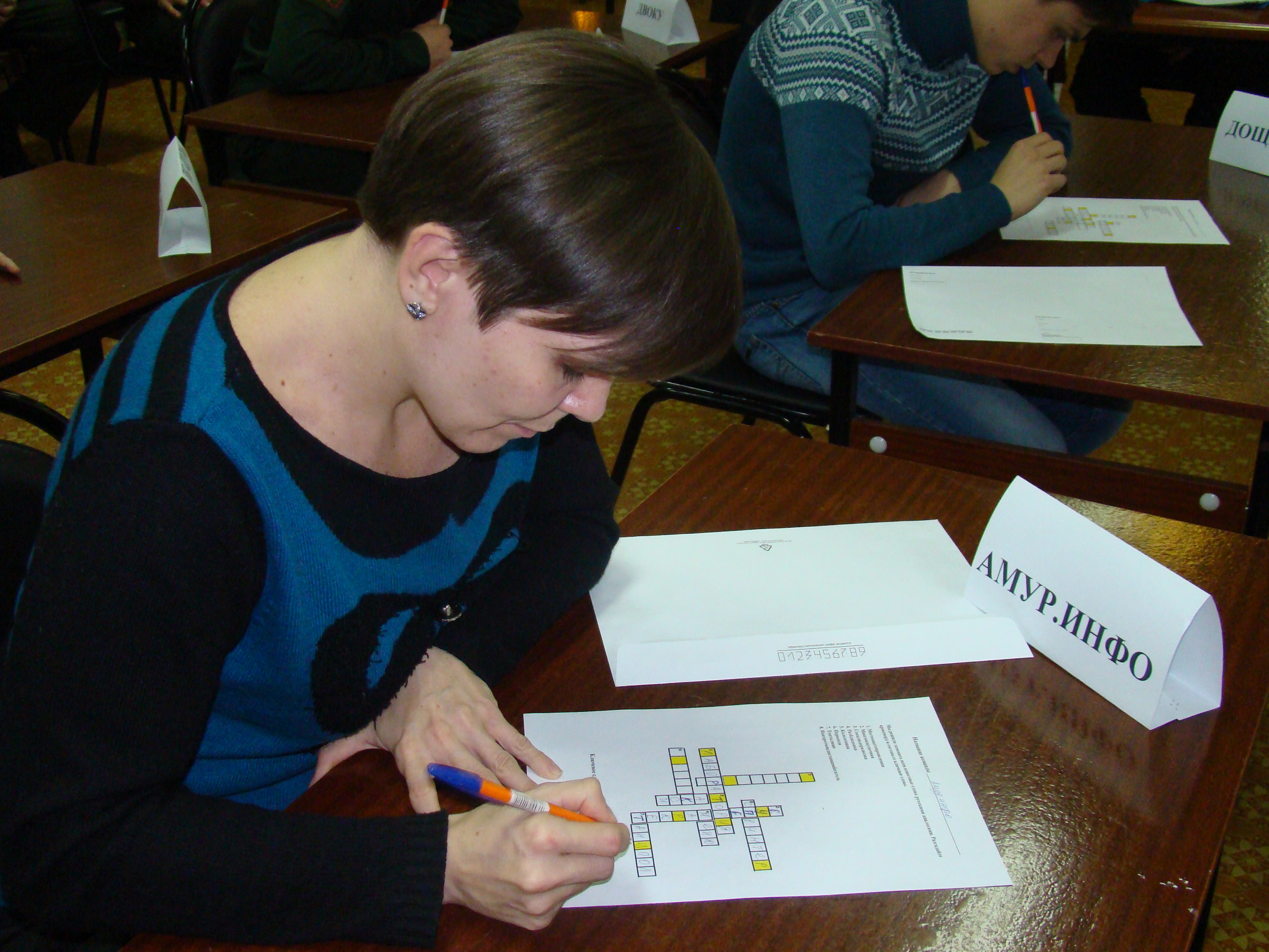 В первом конкурсе – «Кроссворд» вперёд вырвались две команды: ПК «ЦУМ» и областной библиотеки. Они смогли угадать все слова, заменённые русскими аналогами и составить ключевое слово. Таким образом, команды получили равное количество баллов – 24.