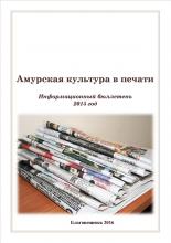 Настоящий выпуск информационного бюллетеня «Амурская культура в печати» знакомит читателей с публикациями в периодических изданиях, отражающими состояние амурской культуры в 2015 году. В бюллетень также включены статьи за 2014 год, не вошедшие в предыдущий выпуск. Материал сгруппирован в тематических разделах и детализированных подразделах: "Общие вопросы культуры", "Исторические памятники и памятные места", "События культурной жизни", "Театральная жизнь", "Учреждения культуры и творческие коллективы", "Библиотеки", "Музеи", "Средства массовой информации", "Люди в культуре", "Гастроли в Приамурье".