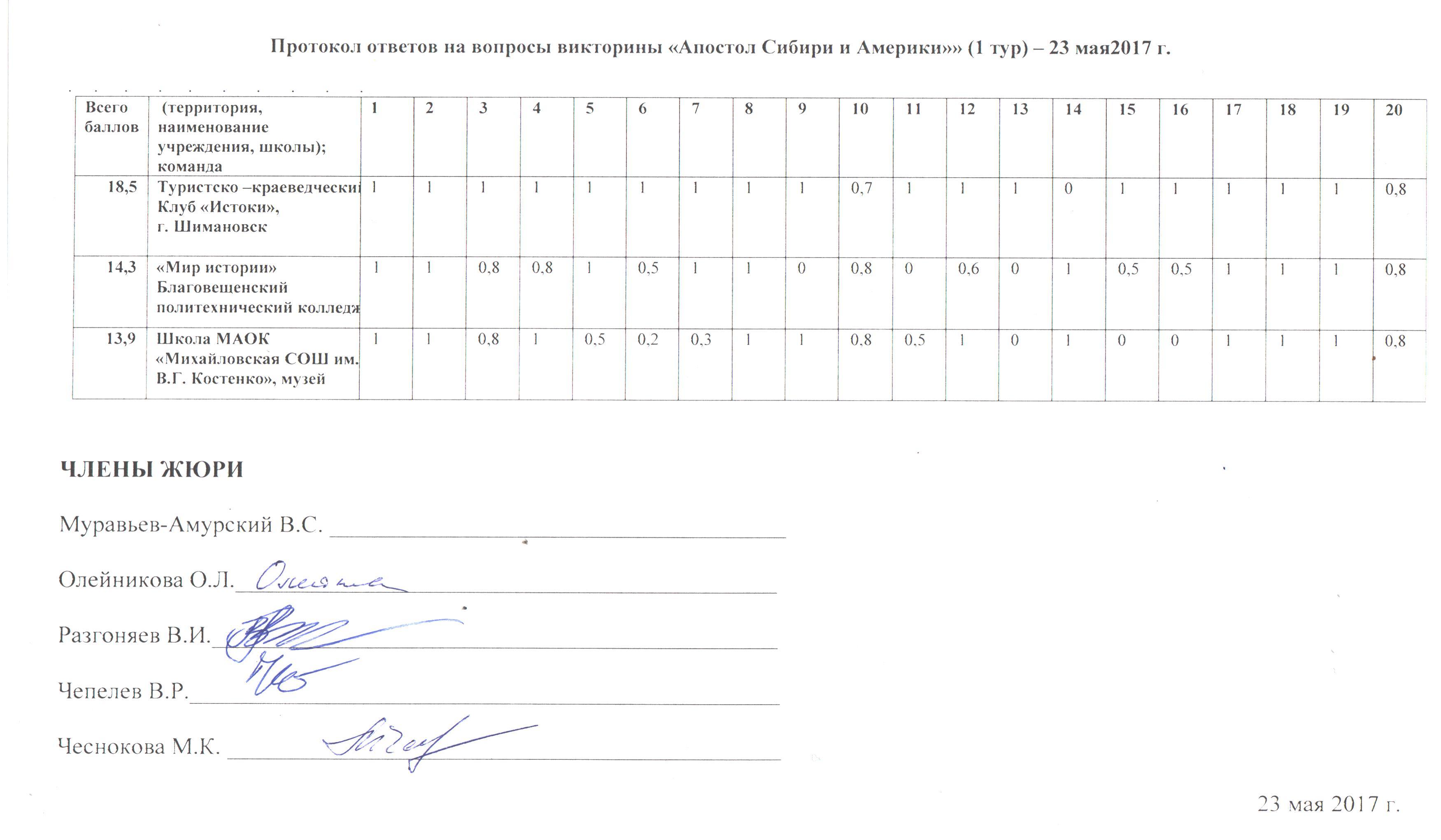 Почетный член жюри викторины – правнучатый племянник Н.Н. Муравьева-Амурского Василий Сергеевич Муравьев-Амурский. Членами жюри являются О.Л. Олейникова, ветеран педагогического труда, член оргкомитета проекта «По пути Святителя Иннокентия»; В.И. Разгоняев, член экспертно-консультативного Совета по сохранению исторического наследия при губернаторе Амурской области, скульптор, писатель, художник; В.Р. Чепелев, историк-краевед; М.К.Чеснокова, заведующий отделом краеведения и редких книг Амурской областной научной библиотеки.