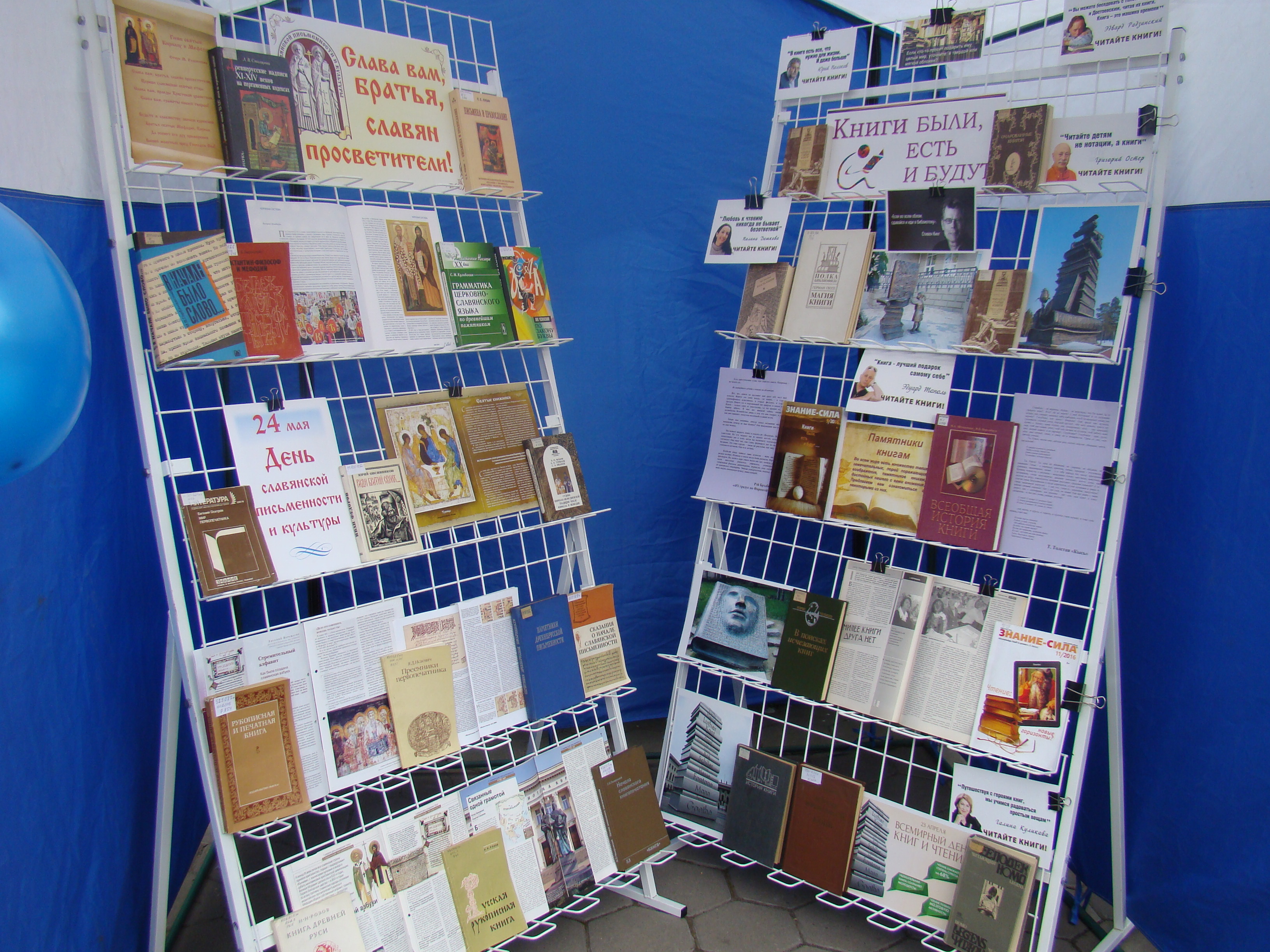 Экспозиции «Слава вам, братья, славян просветители!» и «Книги были, есть и будут» предлагали вниманию посетителей материалы о жизни и деятельности великих славянских просветителей, святых равноапостольных братьев Кирилла и Мефодия; истории книги и искусстве книгописания, о роли книги в повседневной жизни народа и в международных культурных связях Руси и мн. др.