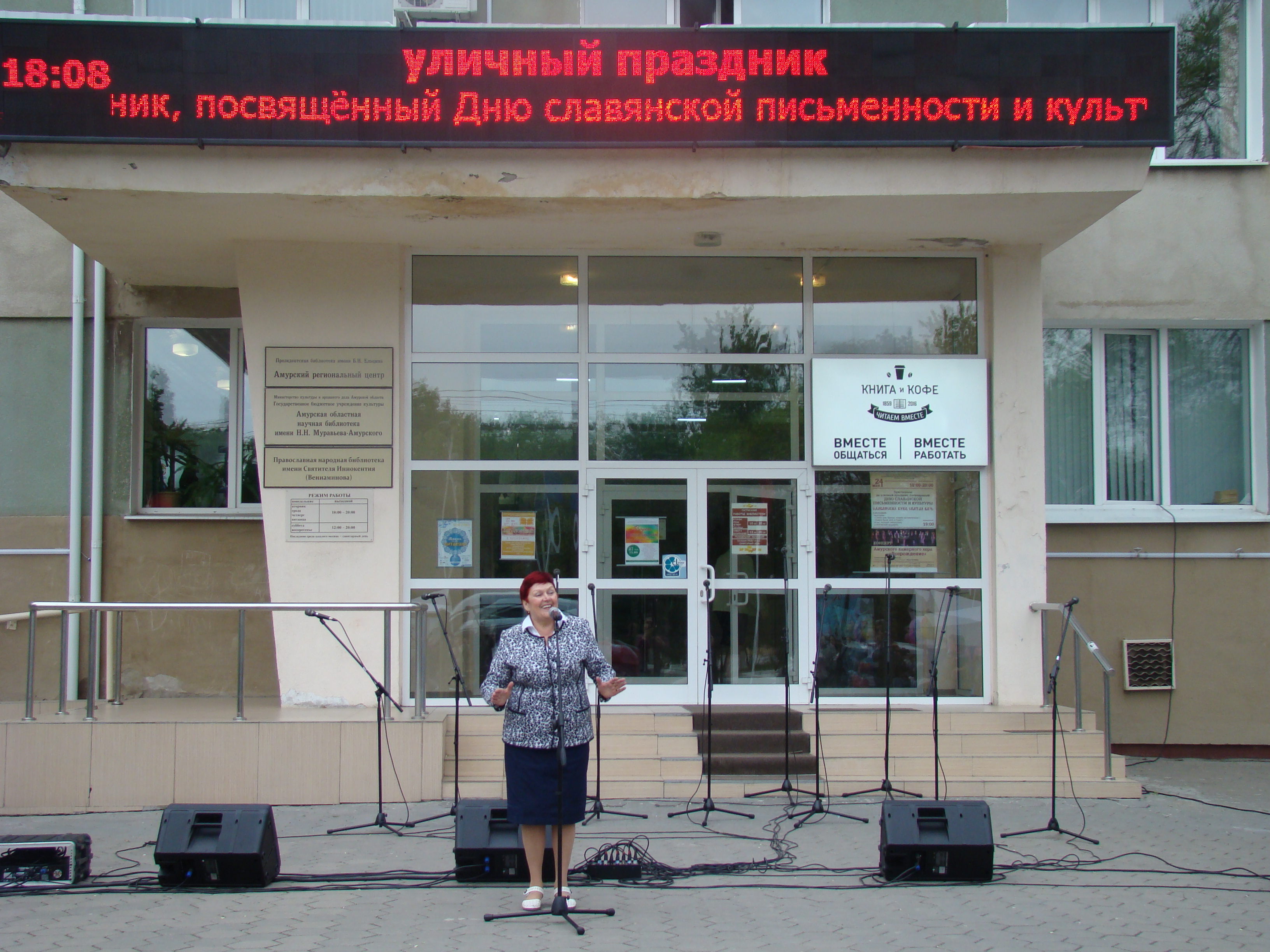 24 мая на площадке перед Амурской областной научной библиотекой состоялся уличный праздник «Славянских букв святая вязь», посвящённый Дню славянской письменности культуры, к участию в котором были приглашены все желающие.