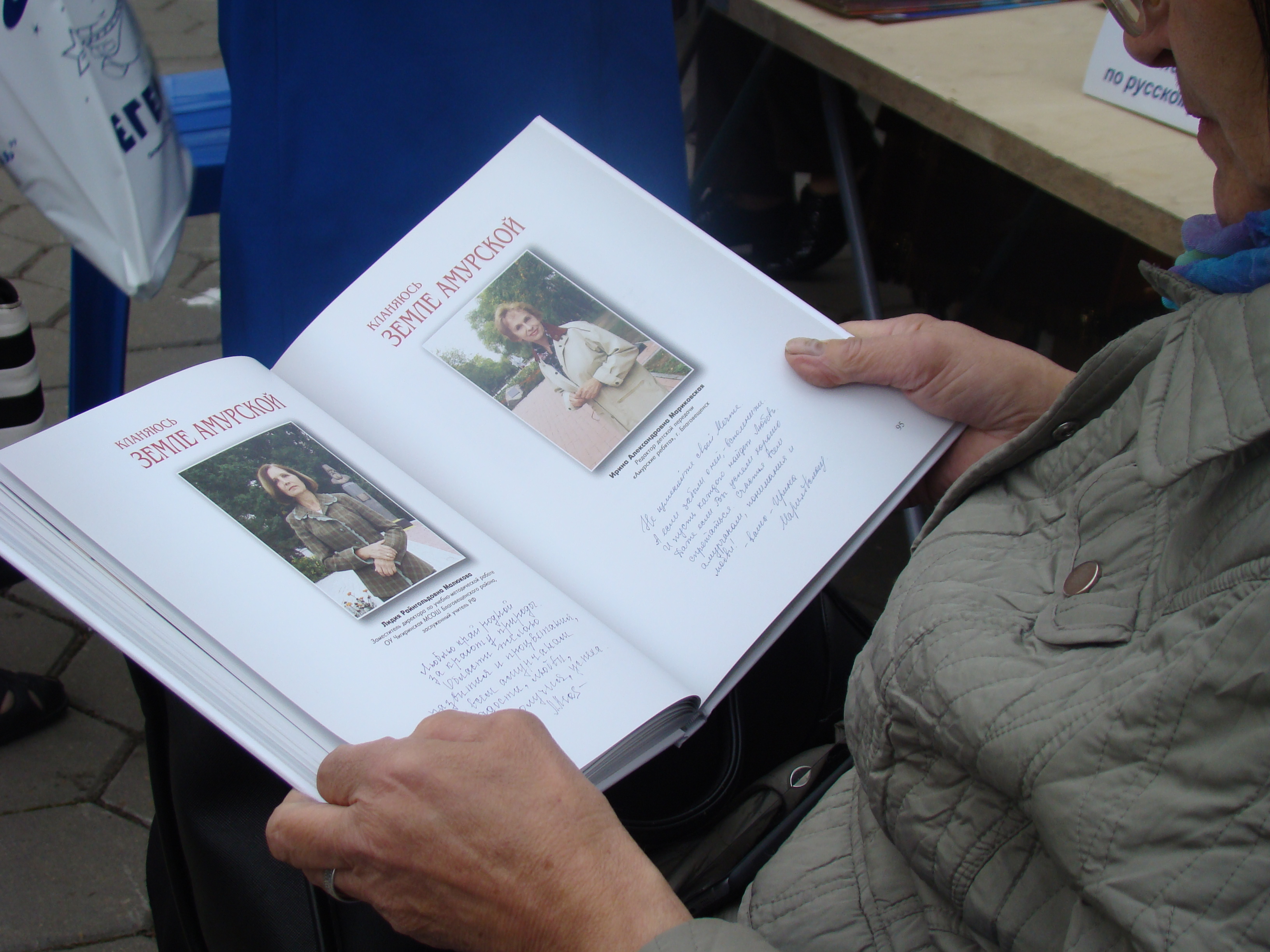 На площадке «Поэтический марафон» с 18.00 до 19.00 всем желающим предоставлялась возможность почитать свои любимые стихотворения. Ярким и запоминающимся было исполнение стихотворений участниками литературно-музыкального клуба «Амур».
