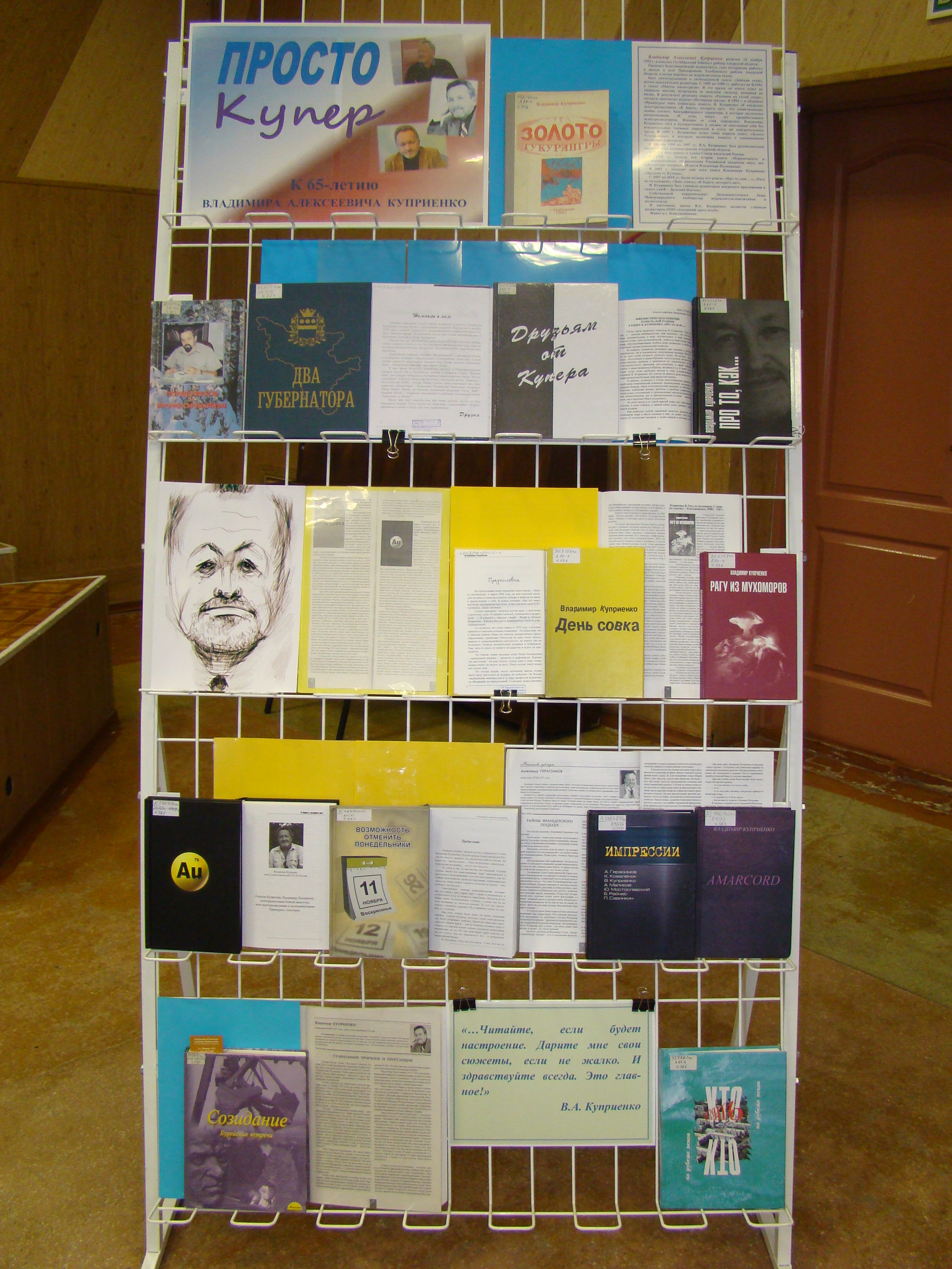 Все изданные в разные годы сборники повестей и рассказов амурского писателя Владимира Куприенко представлены на выставке «Просто Купер» в отделе краеведения и редких книг, которая будет работать до конца ноября.